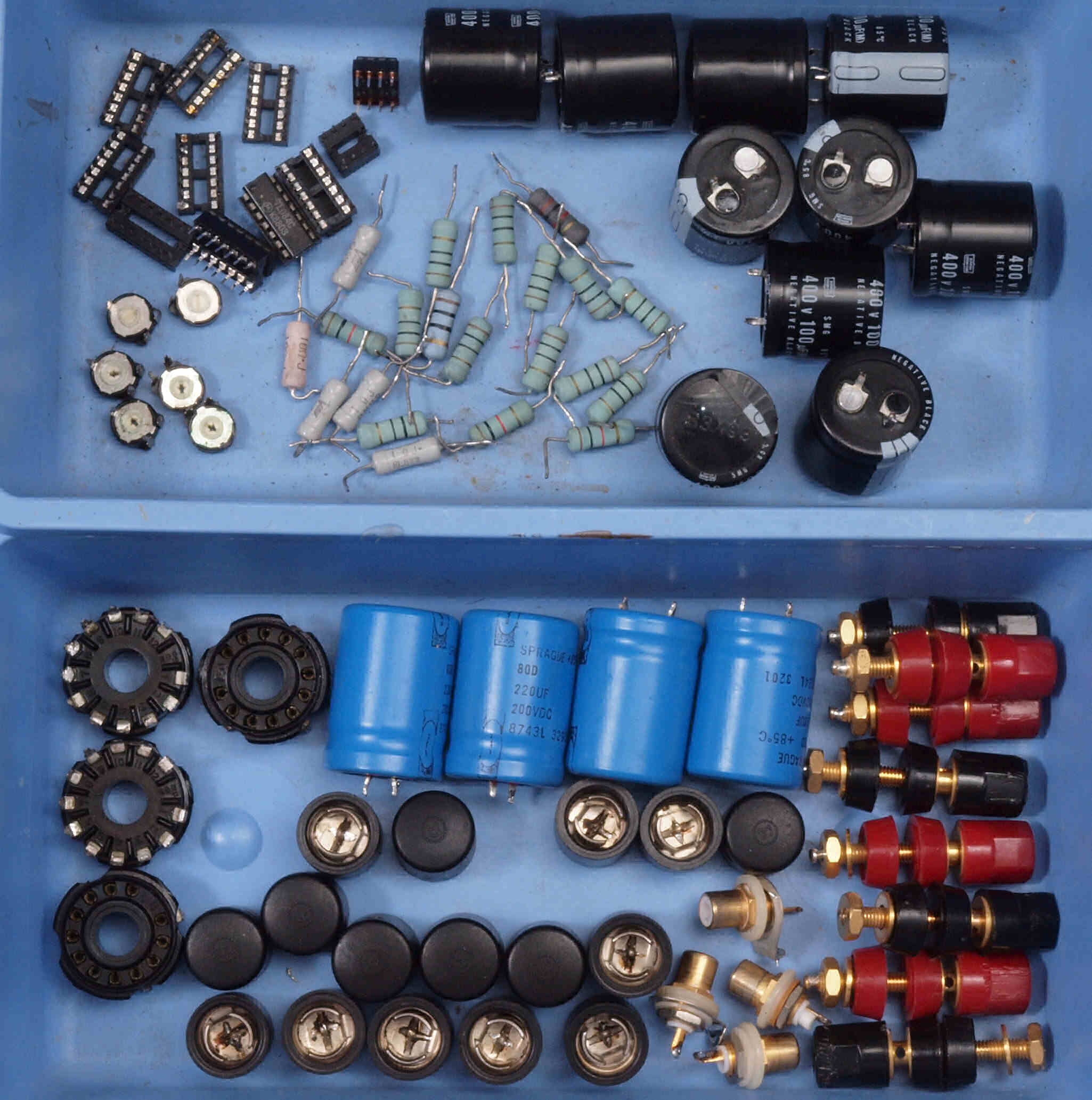 | C24. 修理後 入力・ドライブ基板。 洗浄後、OP−AMP1個、タイト製金メッキ・MT7ピンソケット2個、タイト製金メッキ・MT9ピンソケット1個、電解コンデンサー7個、半固定VR2個、OP-AMPソケット1個交換 | ||||||||||||||||||||||