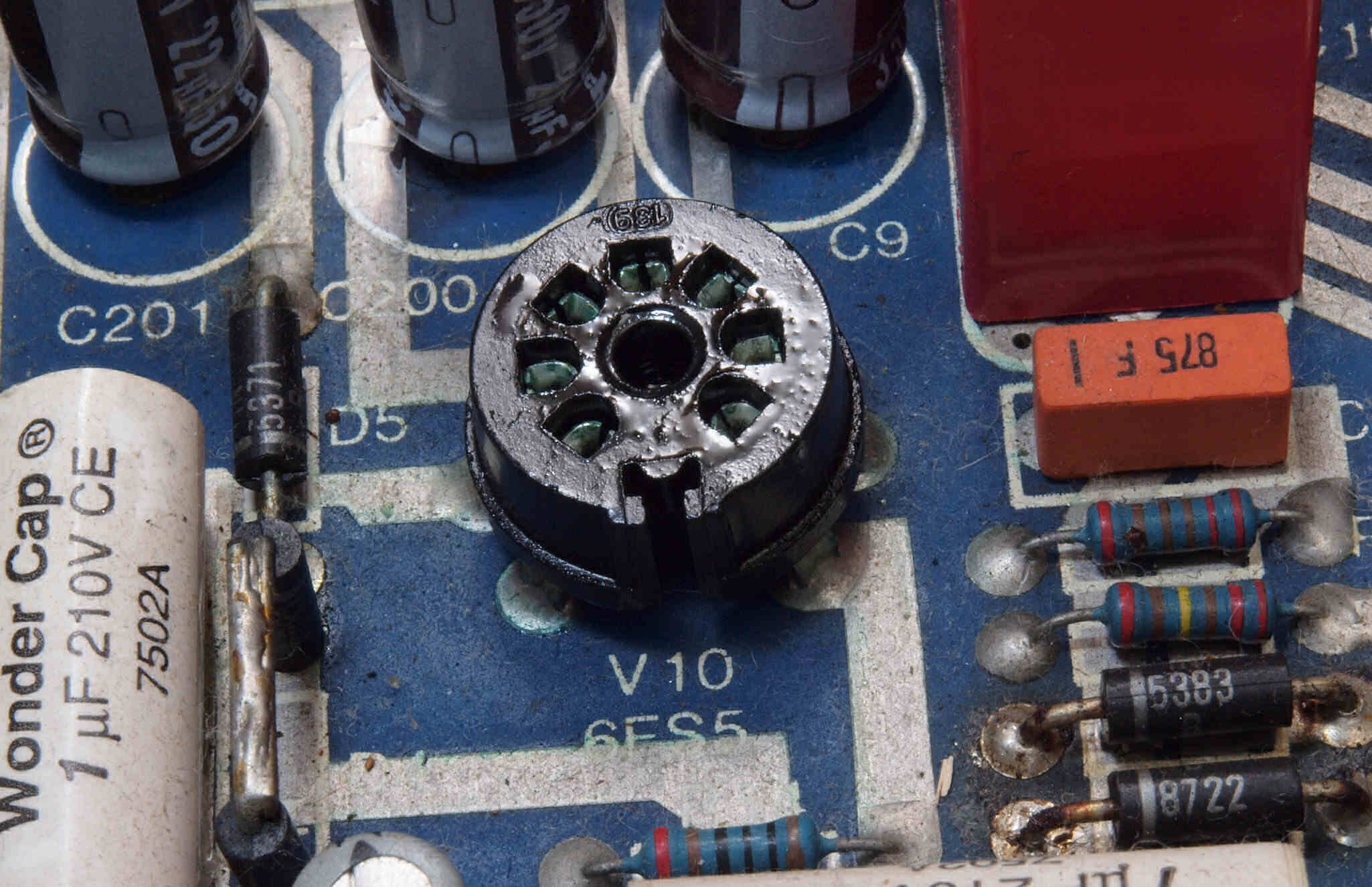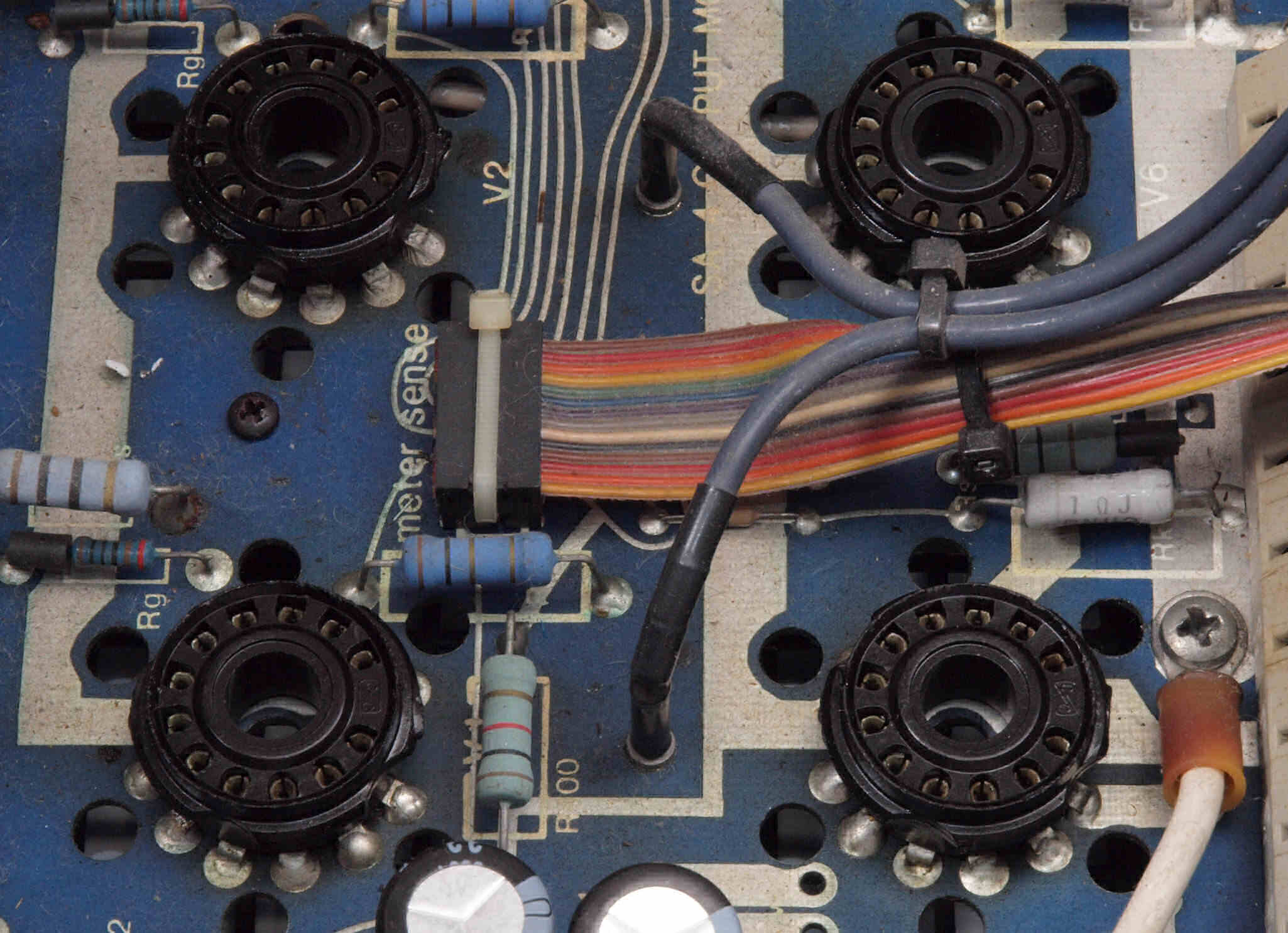 | C115. 修理中 終段6LF6基板。6LF6ソケットのピンに緑青が発生している。 | ||||||||||||||||||||||