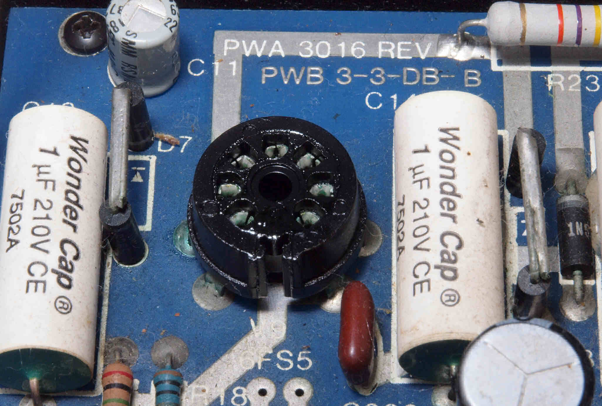 | C116. 修理中 終段6LF6基板。6LF6ソケットのピンに緑青が発生している、その2。 | ||||||||||||||||||||||