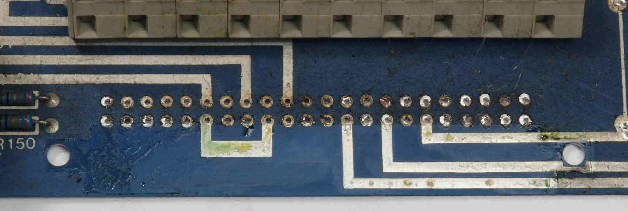 | C262. 修理中 入力・ドライブ基板裏。基板端子に緑青が発生している。 | ||||||||||||||||||||||