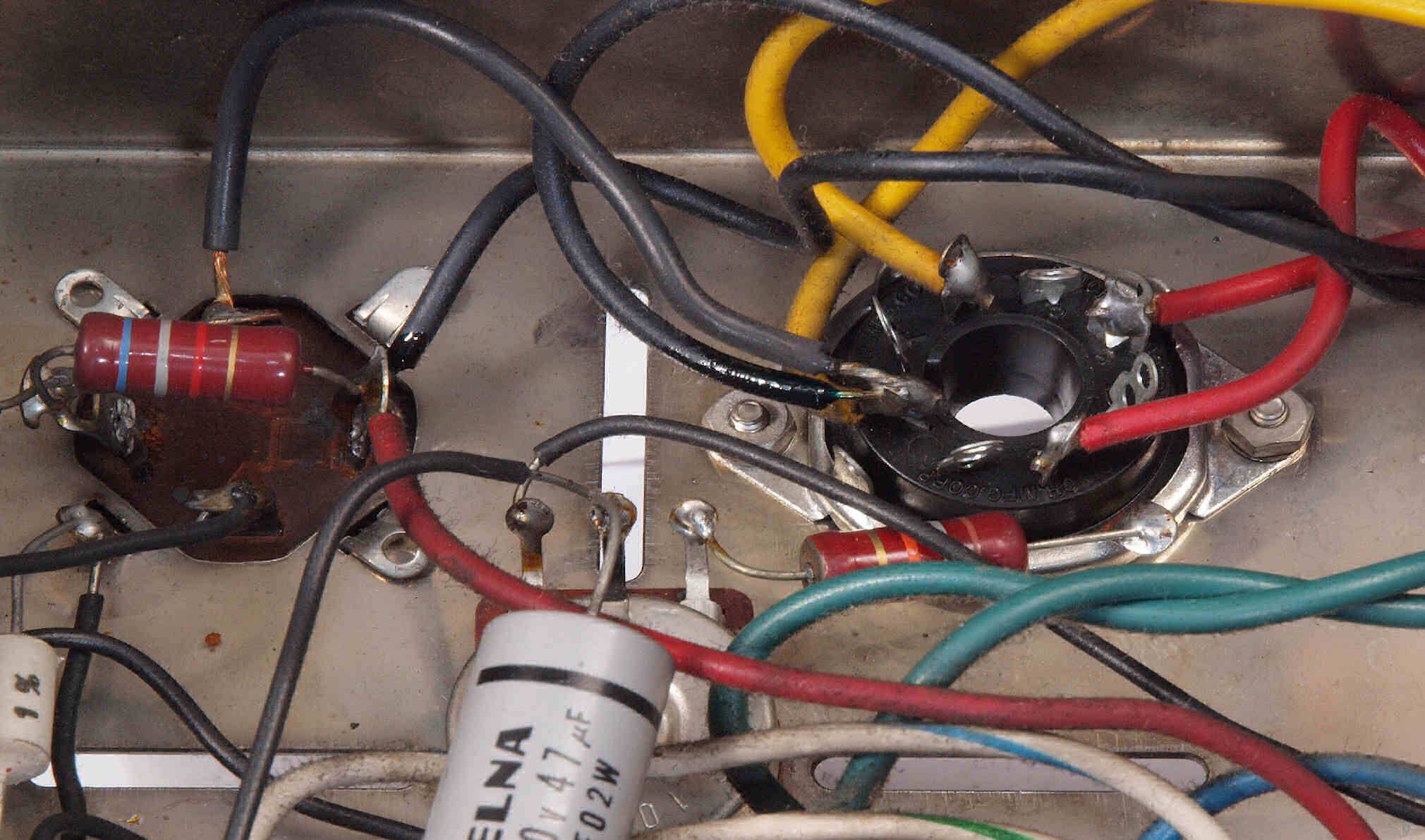C21. 修理前 整流管5AR4ソケット付近。