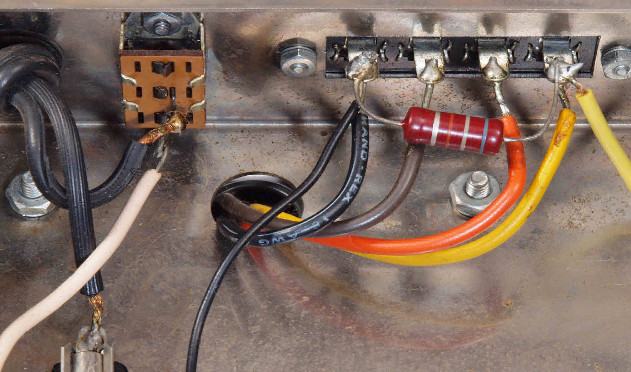C60. 修理前 KT-88ソケット裏配線。