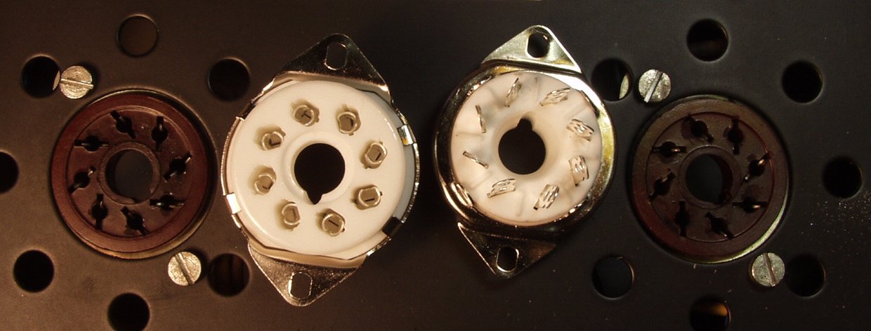 | A−8.修理前 熱で劣化しているKT−88のソケット、中は交換するステアタイト(磁器)製 |