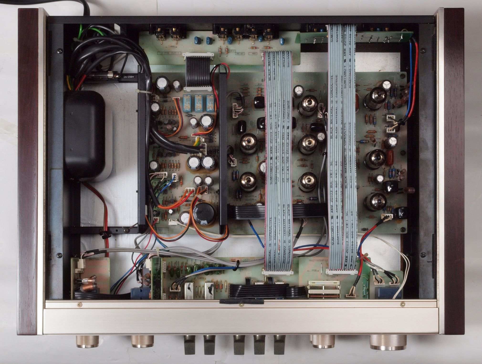 | A62. 点検中 入力RCA端子郡。 テフロン絶縁金メッキ端子に交換可能。 | ||||||||||||||||||||||||||||||||||||