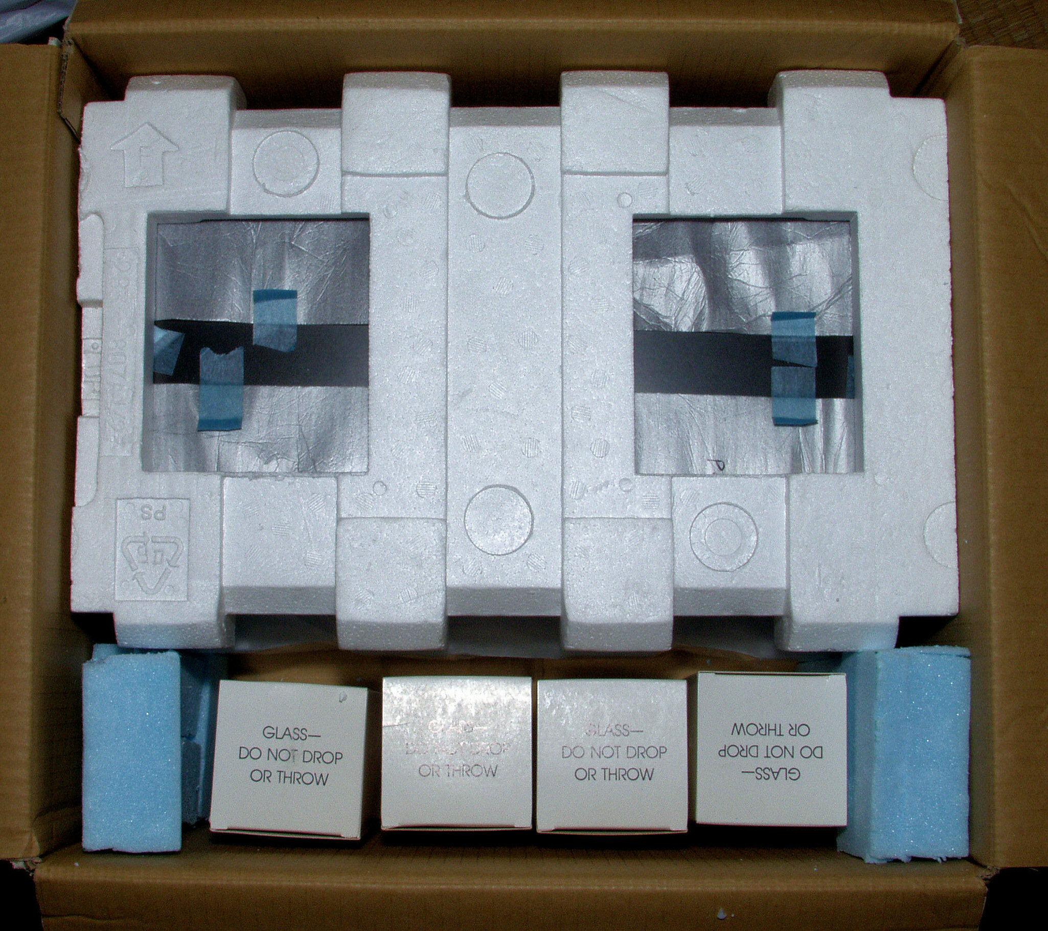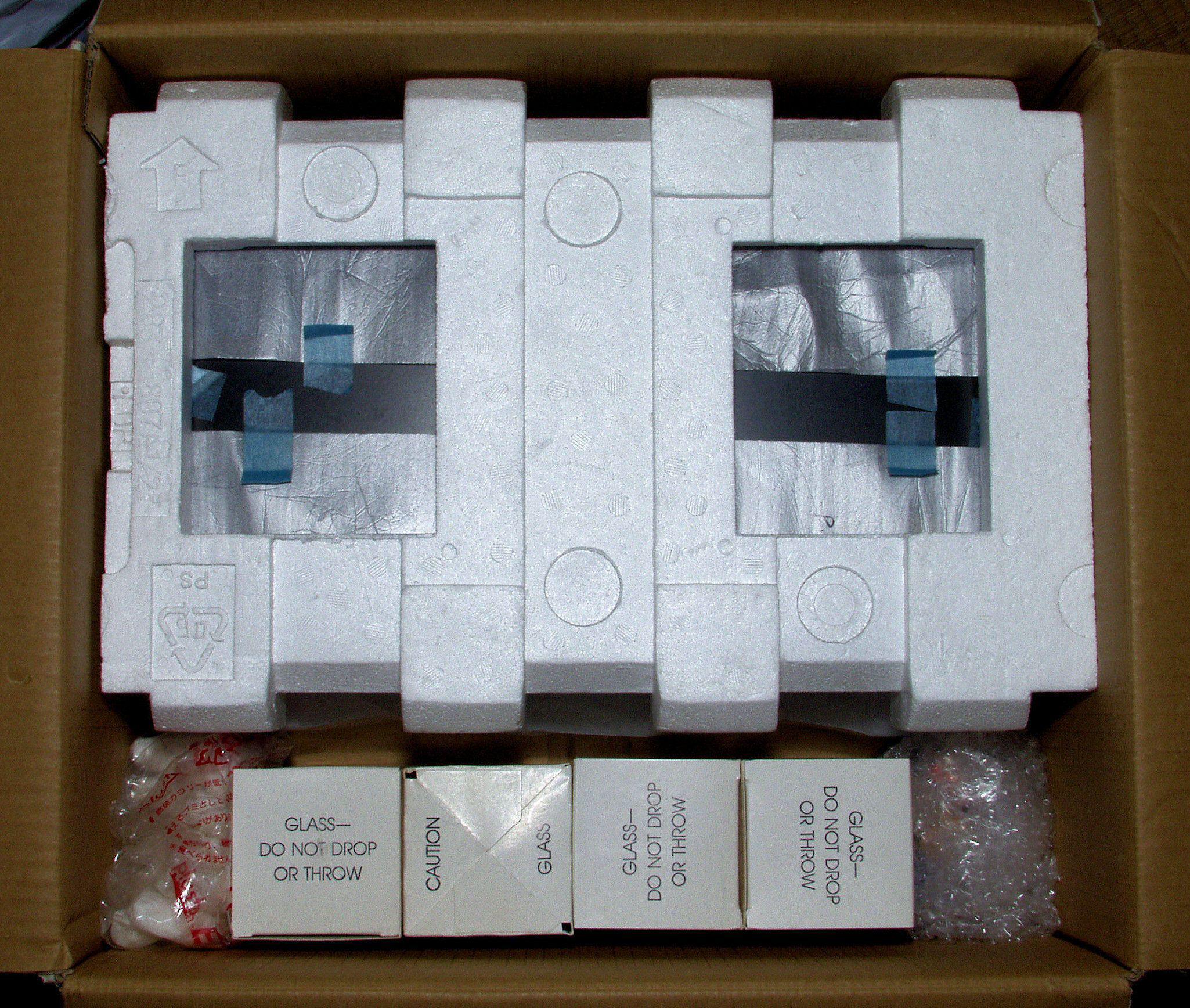 A12. 梱包見る、発砲スチロールで両脇を押さえ、真空管を保護する。