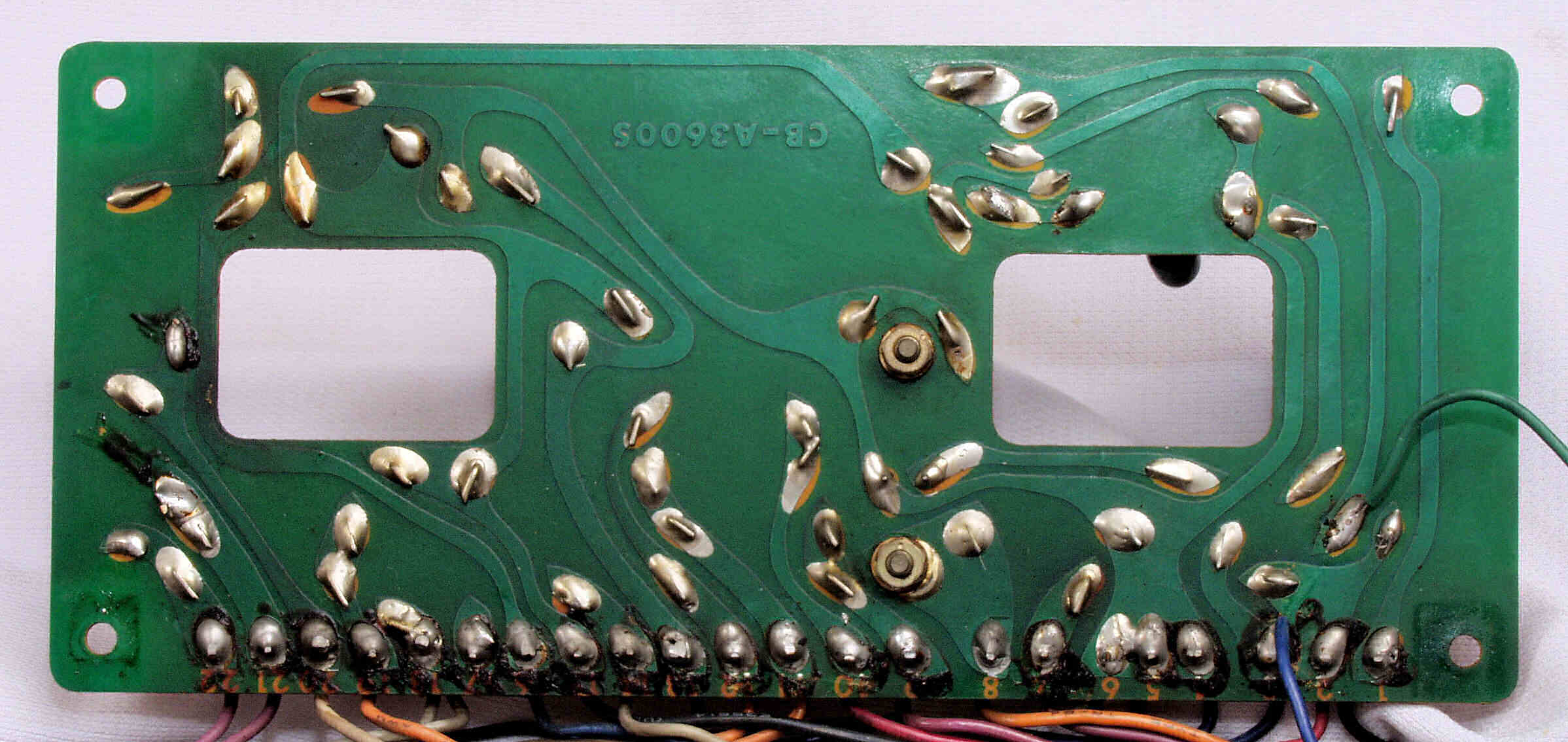 C346. 修理中 前段AMP基板裏。銅箔はく離を補修完了。