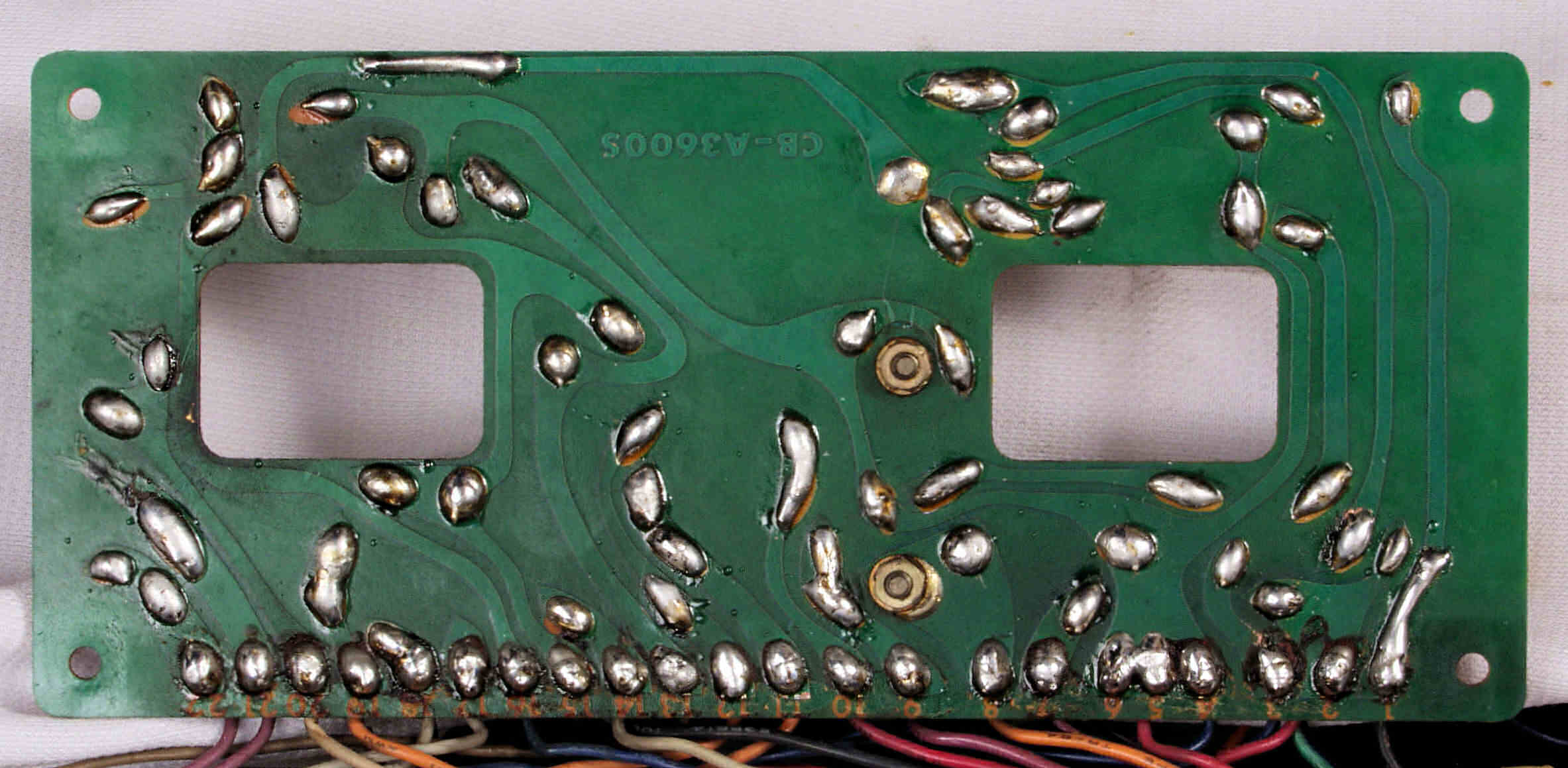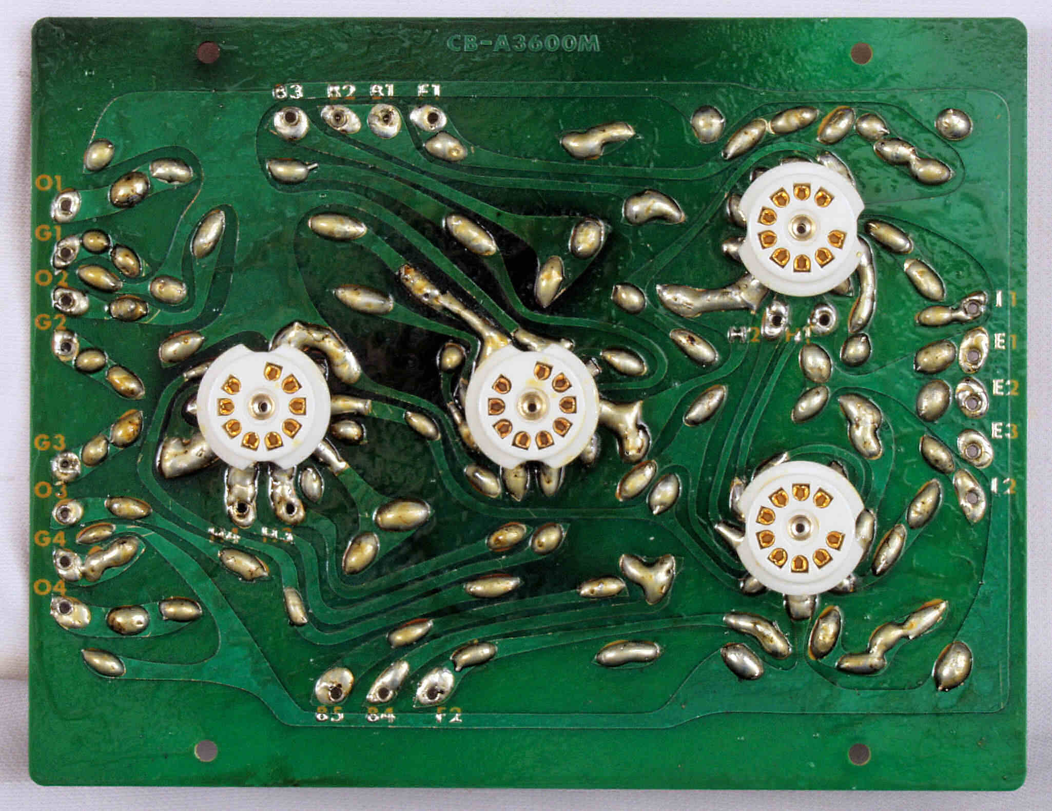 C353. 修理(半田補正)後 前段AMP基板裏。 MT9ピンソケット4個交換。 半田を全部やり直す。