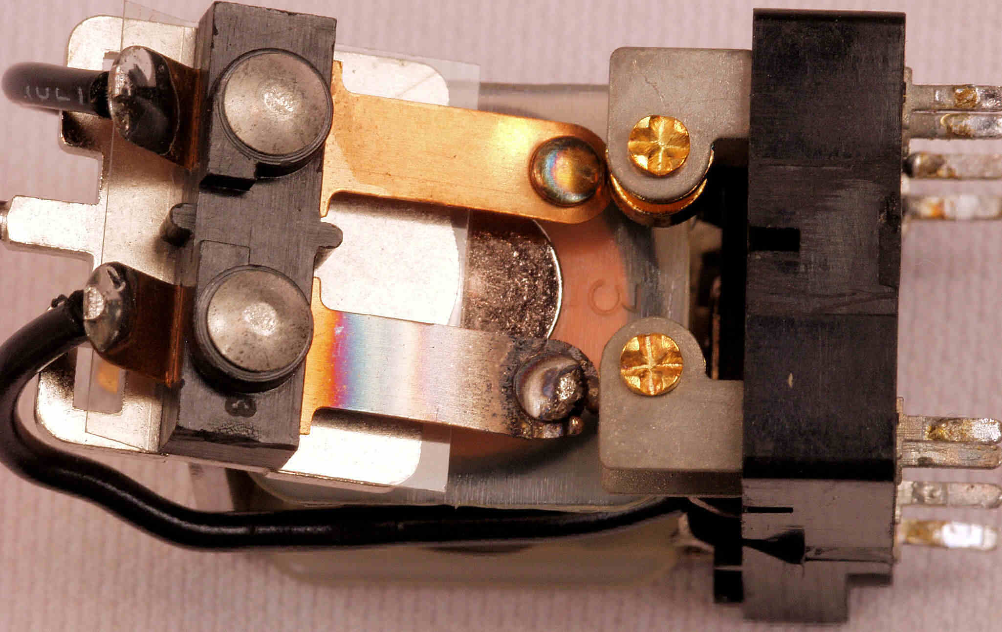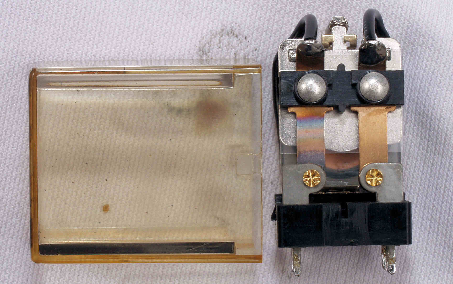 C85. 交換部品、プロテクトリレー、 接点ヒンジが焼けている! ケースにもアークの黒煙後がある。