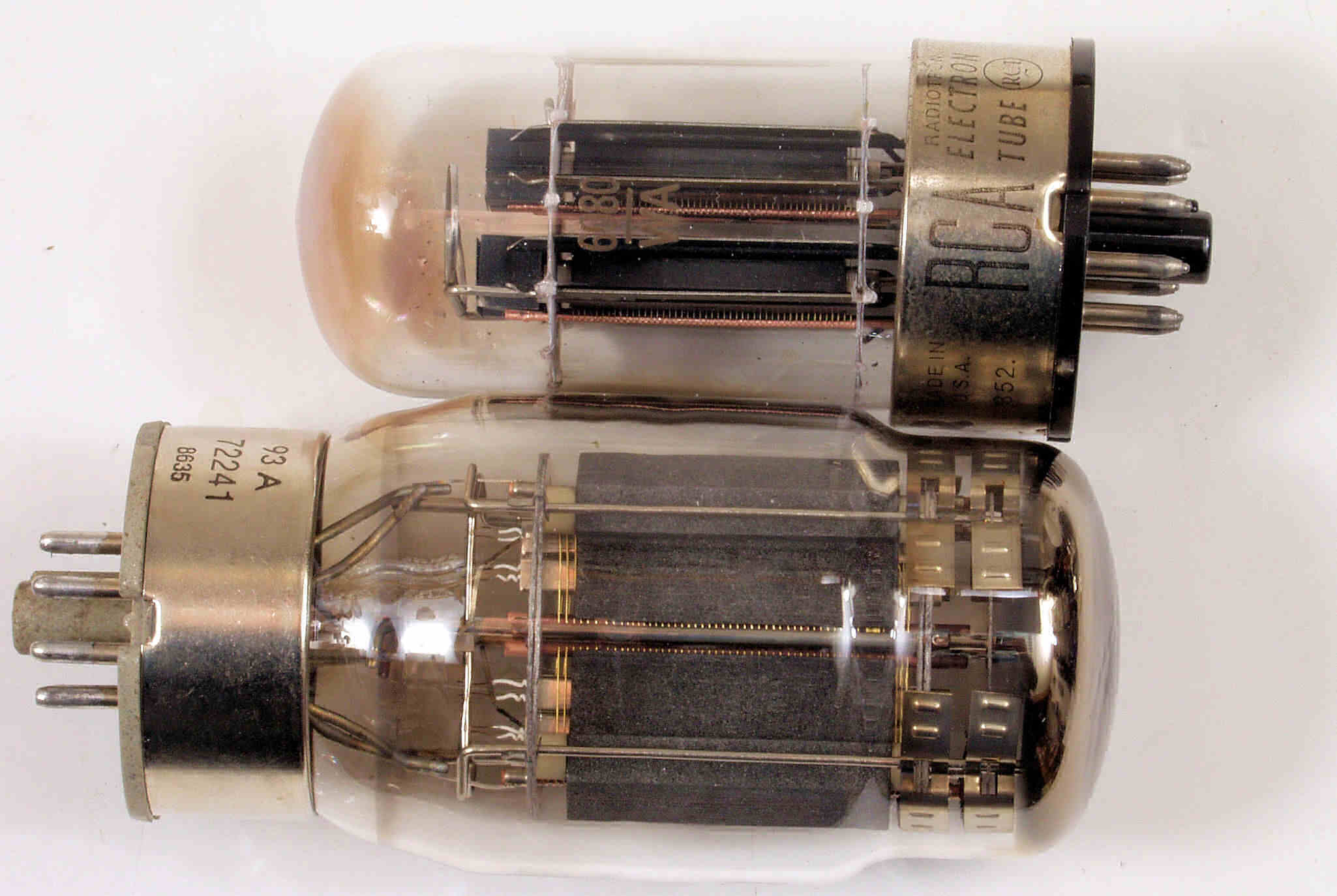 A62. 点検中 「終段出力真空管6336A」と「終段出力真空管6336B」の比較。