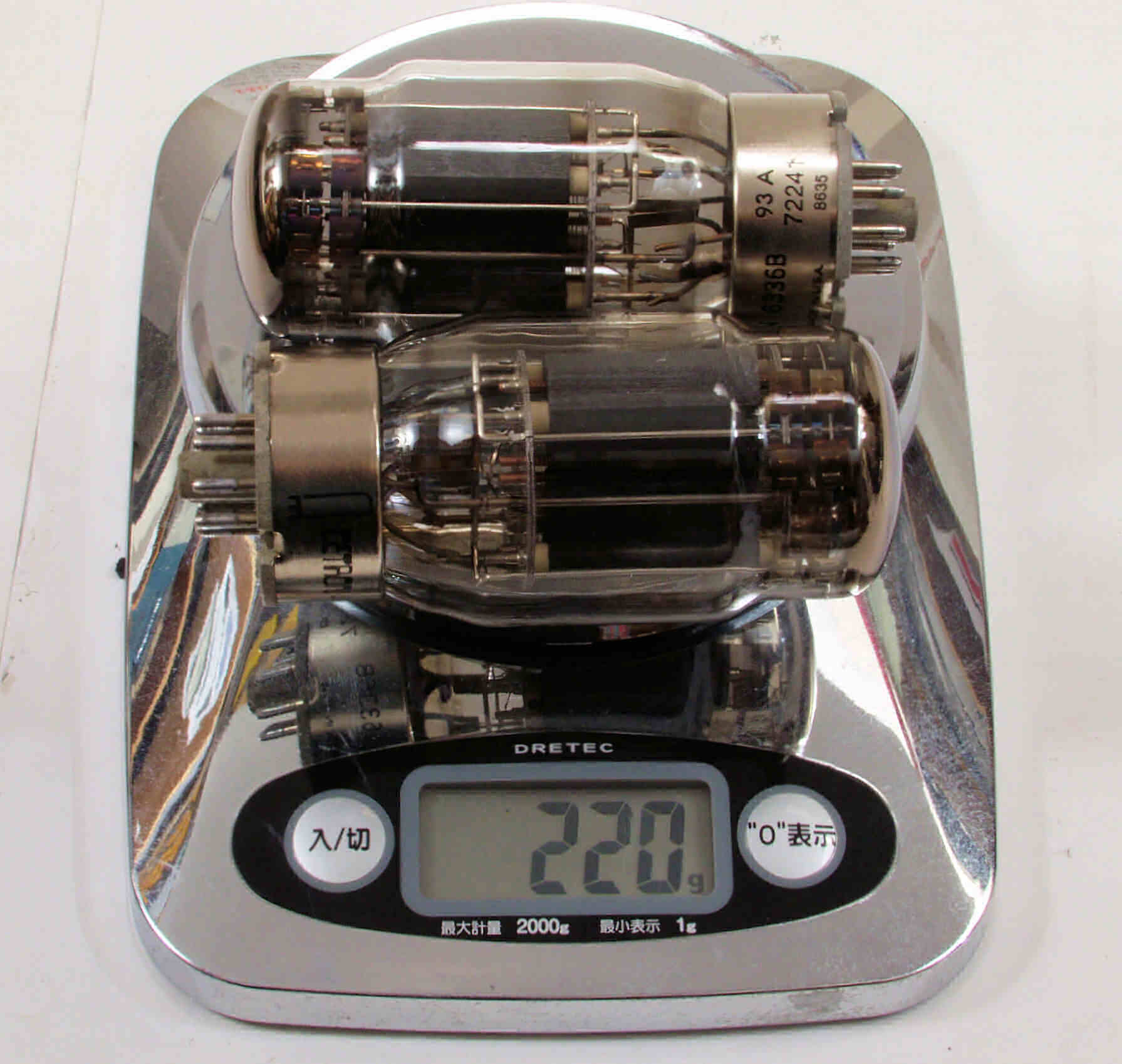 A64. 点検中 「終段出力真空管6336A」の重量測定。 2本で220g。