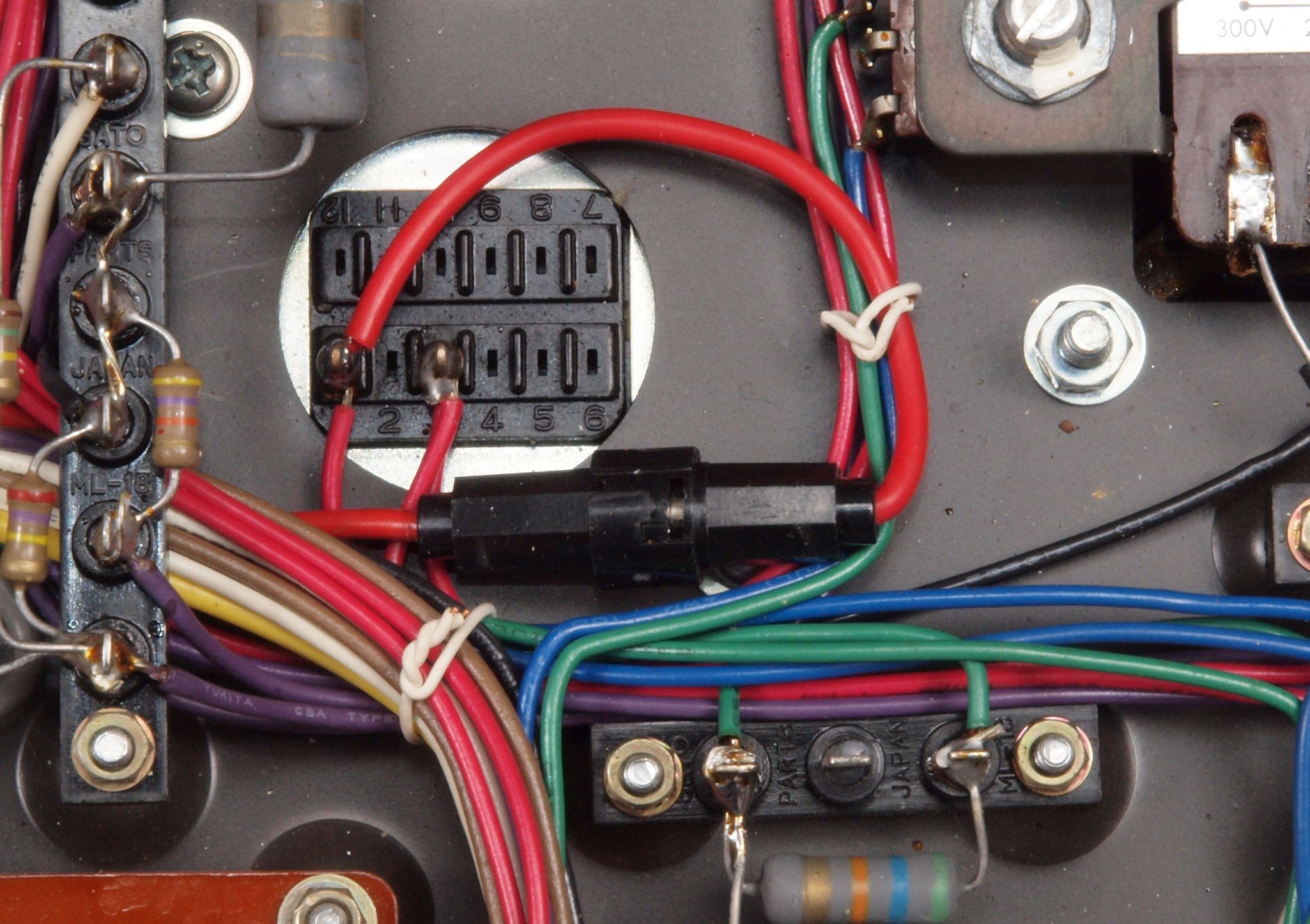C1B. 修理(交換)前 前段真空管ソケット。 金メッキ端子タイト絶縁製に交換。