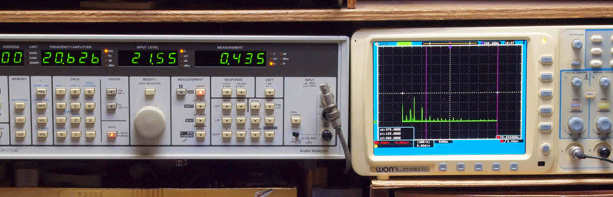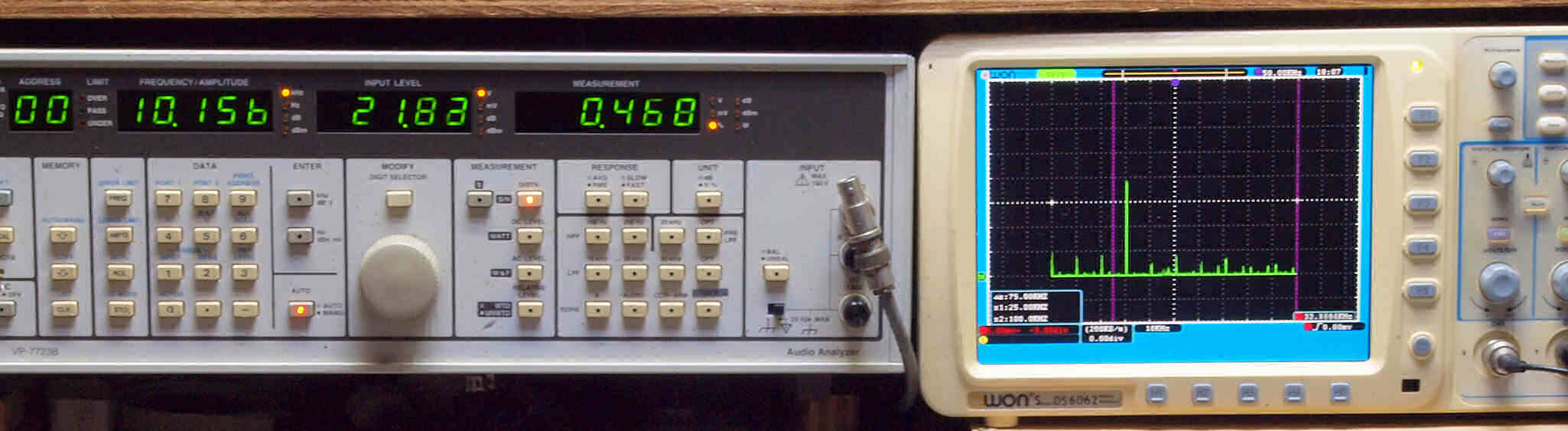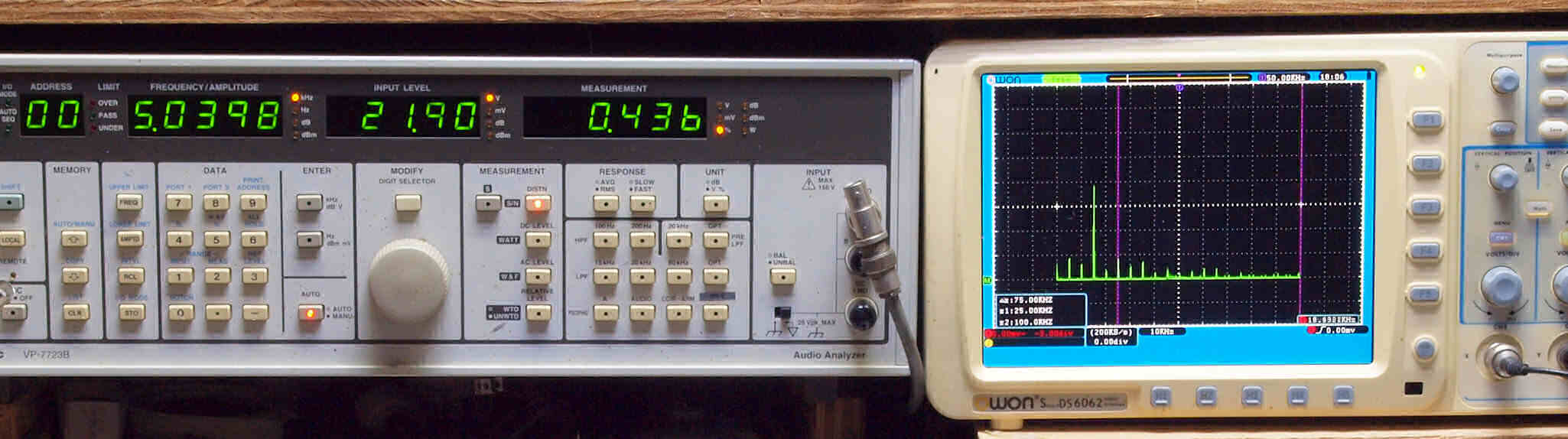 よって、ダイアル設定出力レベルより低くなります。測定機器の仕様や整備の様子はこちら、「VP−7723B」「VP−7201A」。 FFT画面の見方はこちら。