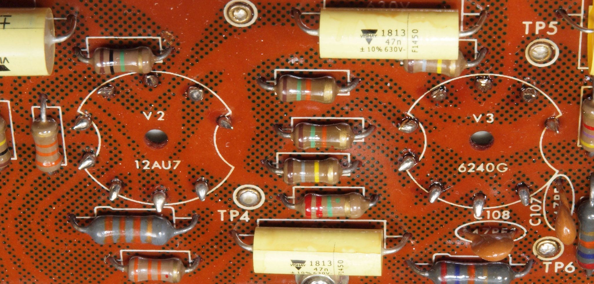 C12. 修理中 前段AMP基板。真空管ソケットを外し、洗浄後。