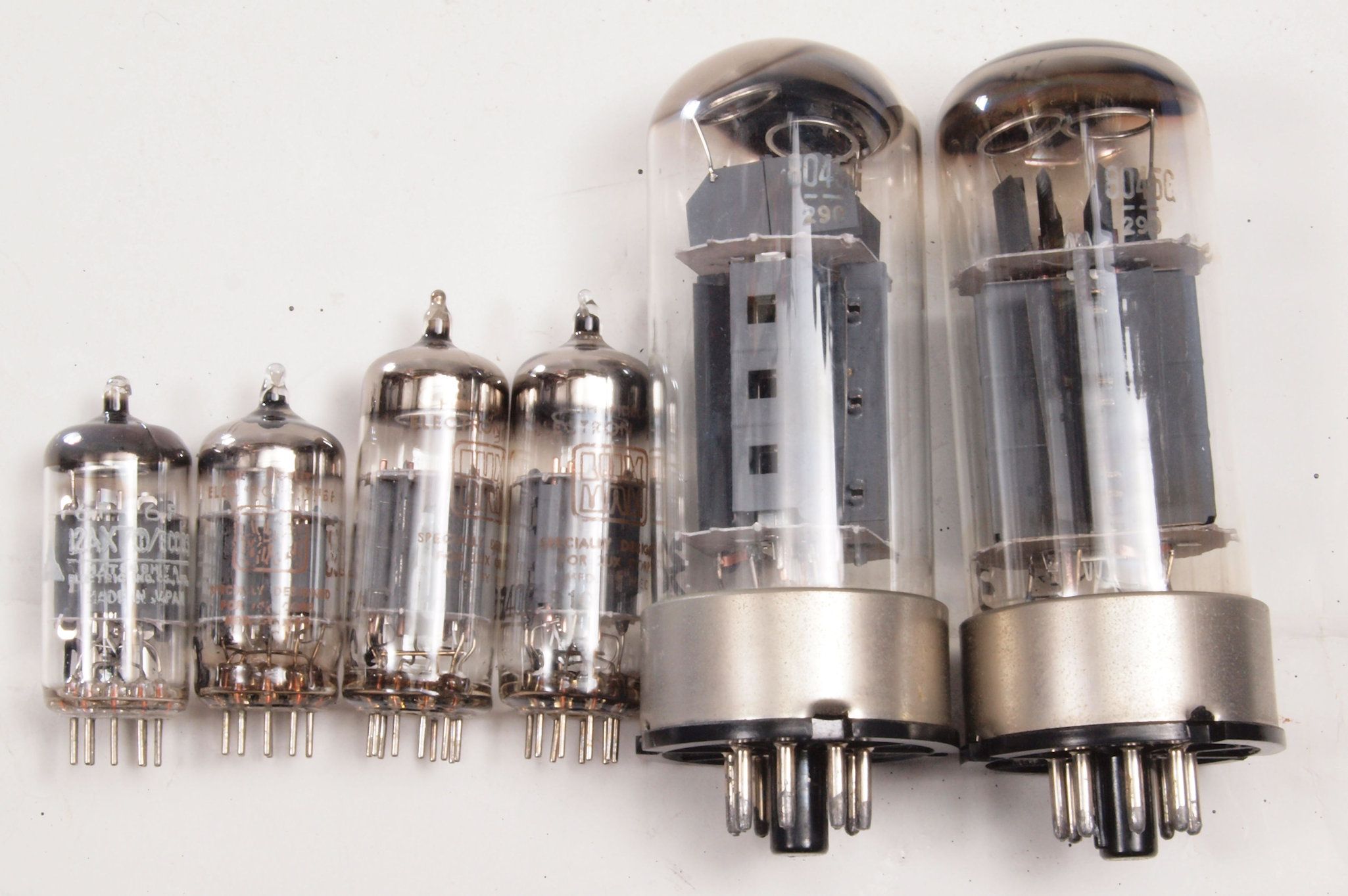 A31. 点検中 真空管。左から12AX7、12AU7、6240G、6240G、8045G、8045G