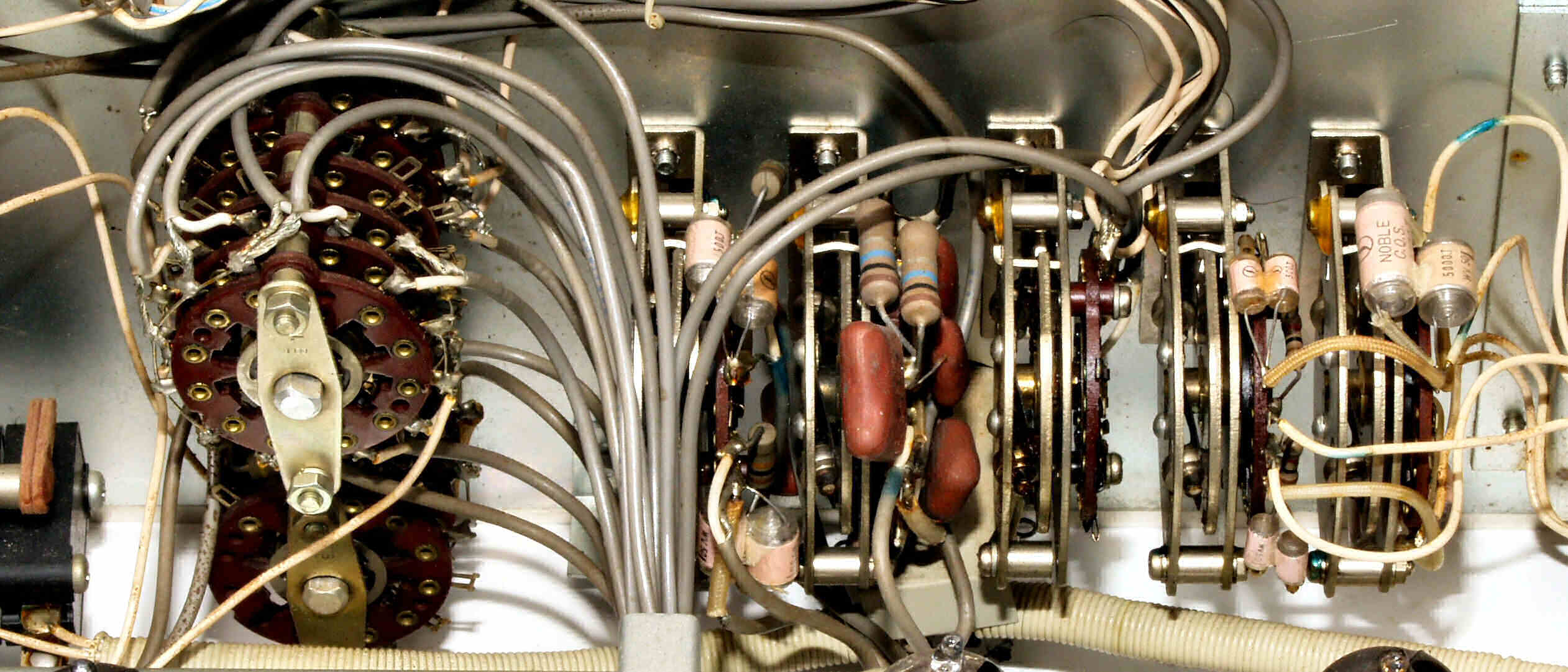C5A. 修理前、出力真空管50CA10、前段真空管6DT8・6267のソケット。