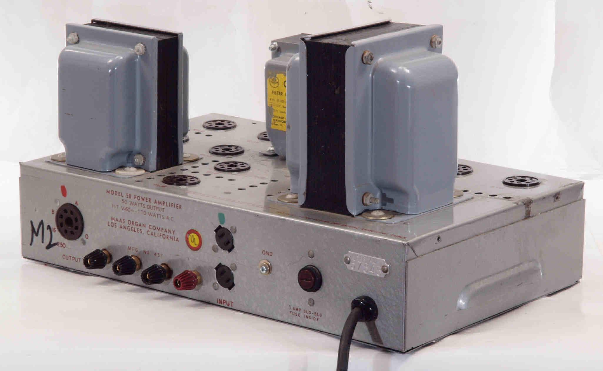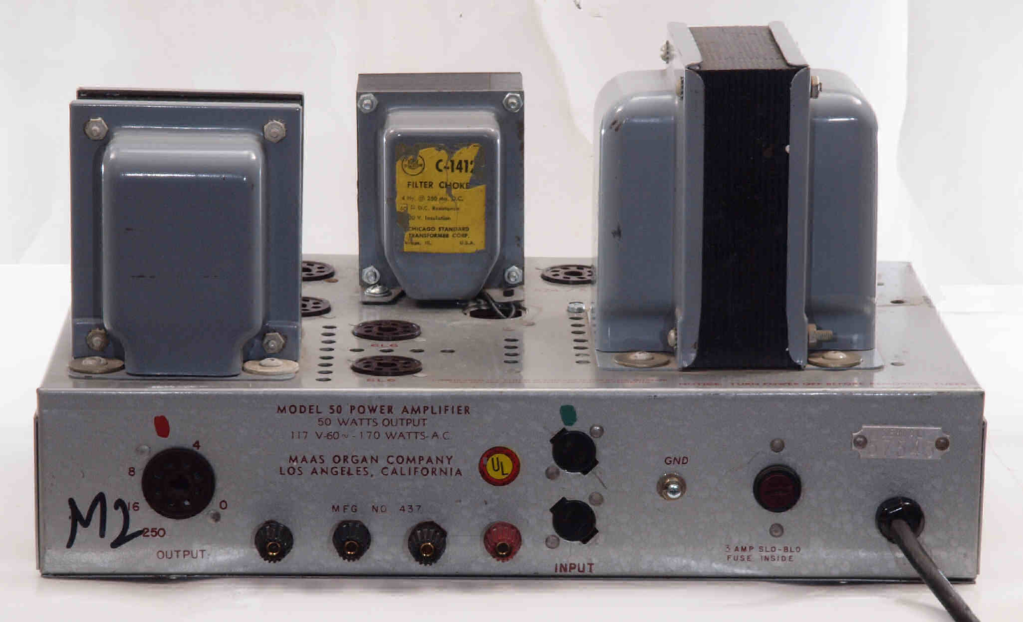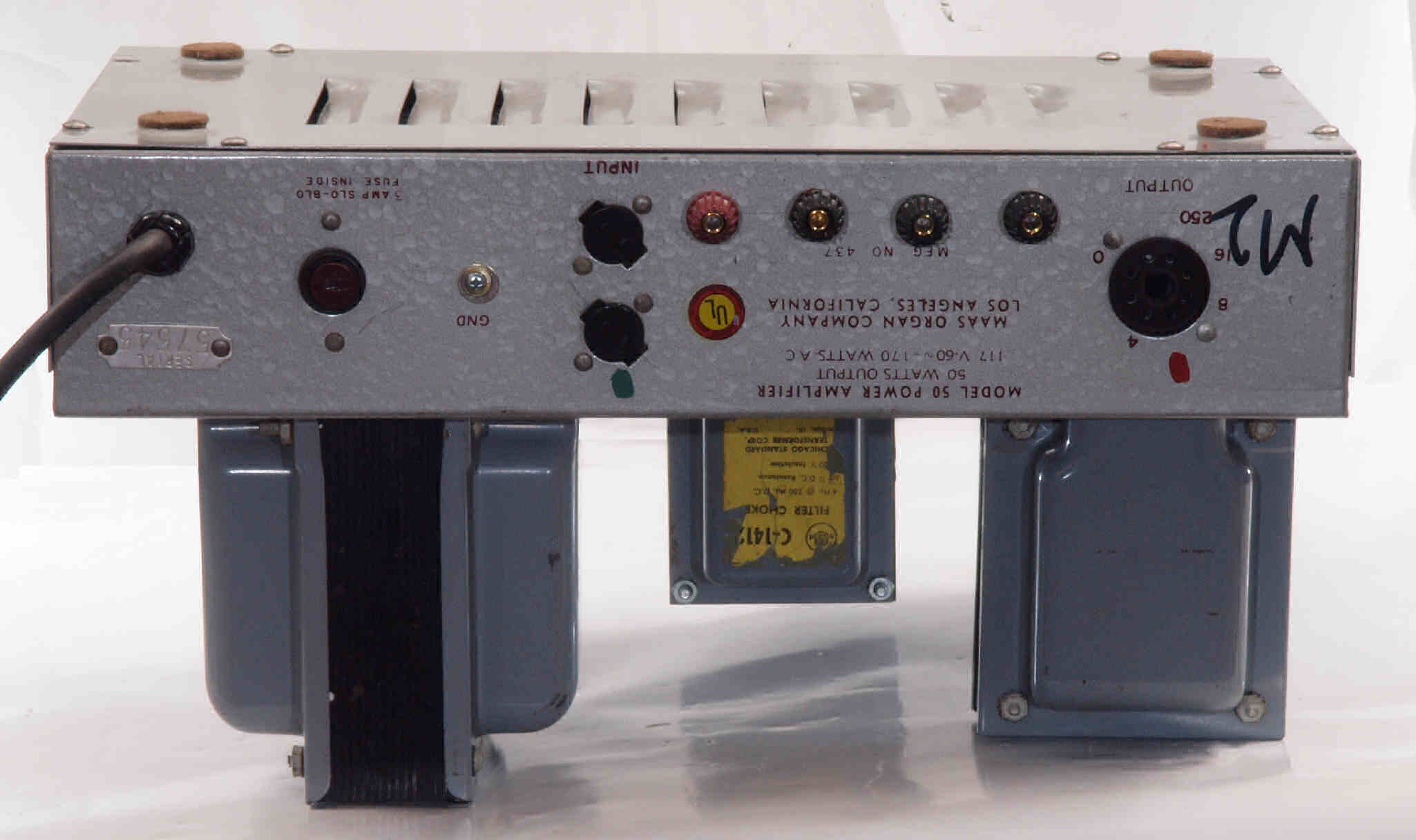 P. 電源トランス点検 T. バラック修理後点検測定 F. 見積・点検、バラック修理費 25,000円。 特別にHP製作。 S. Maas Organ Model 50 の仕様(カタログ・マニアルより) |