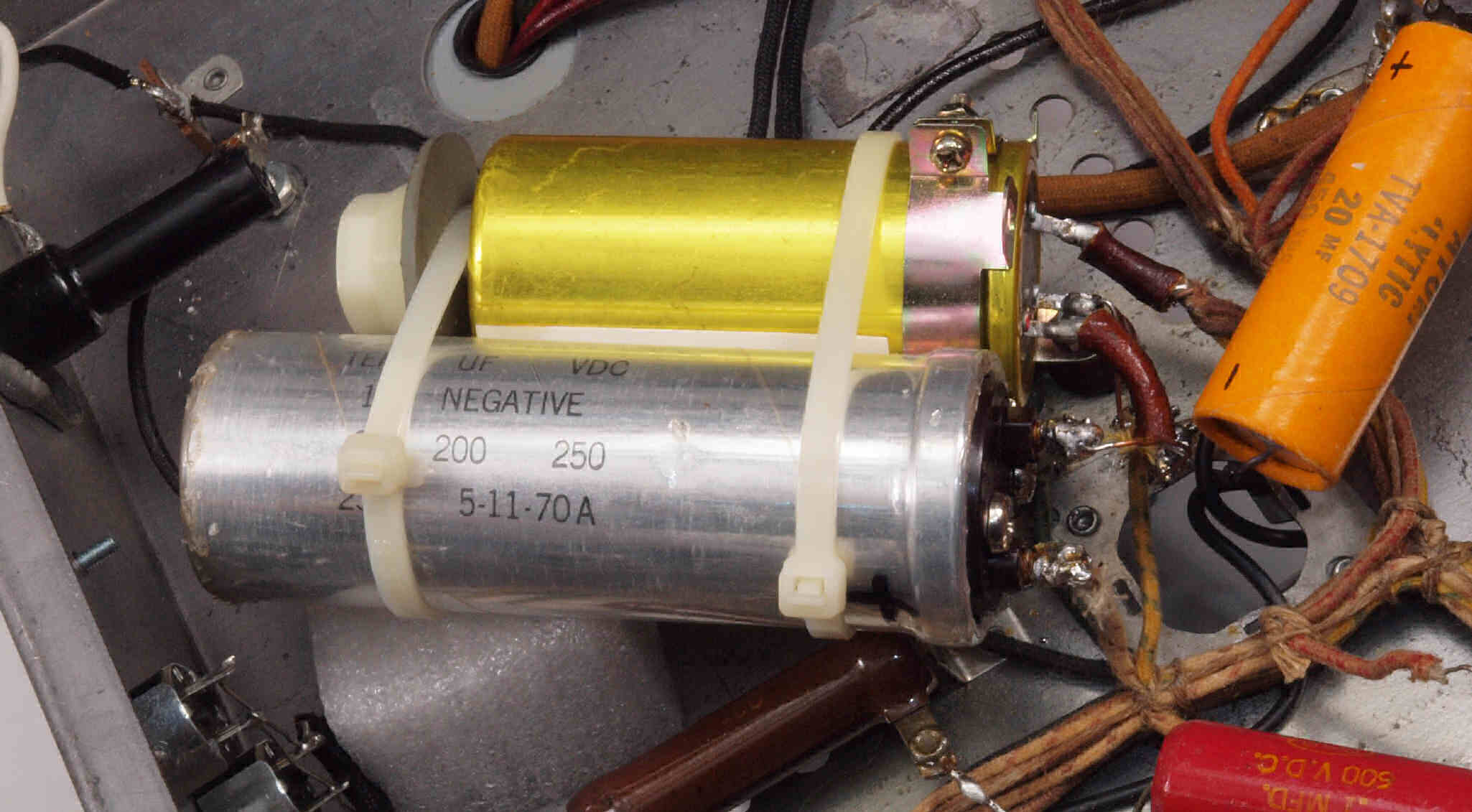 | A32. 点検中 前回の修理で交換された電解コンデンサー、80μ/450V。 | ||||||||||||||||||||||