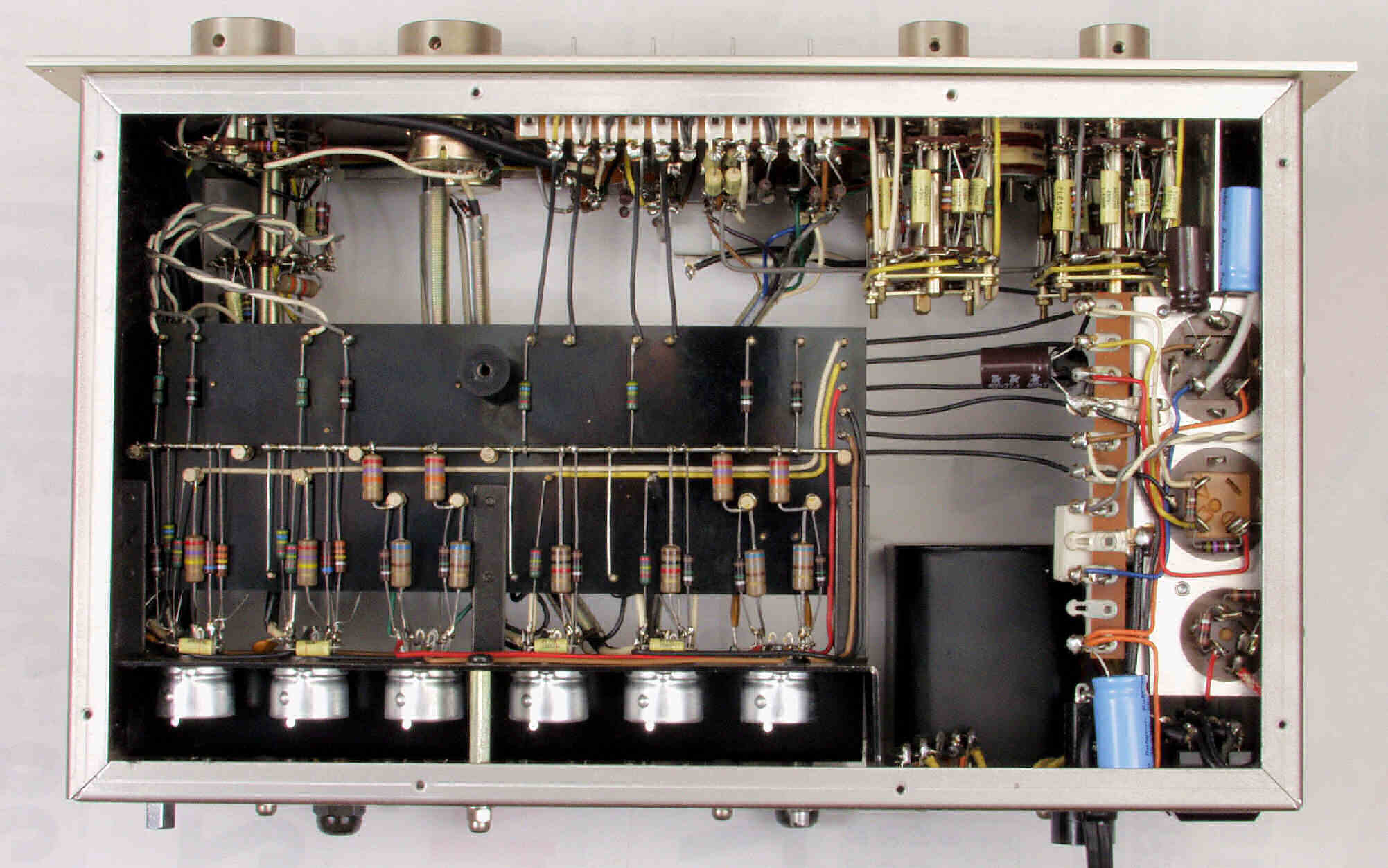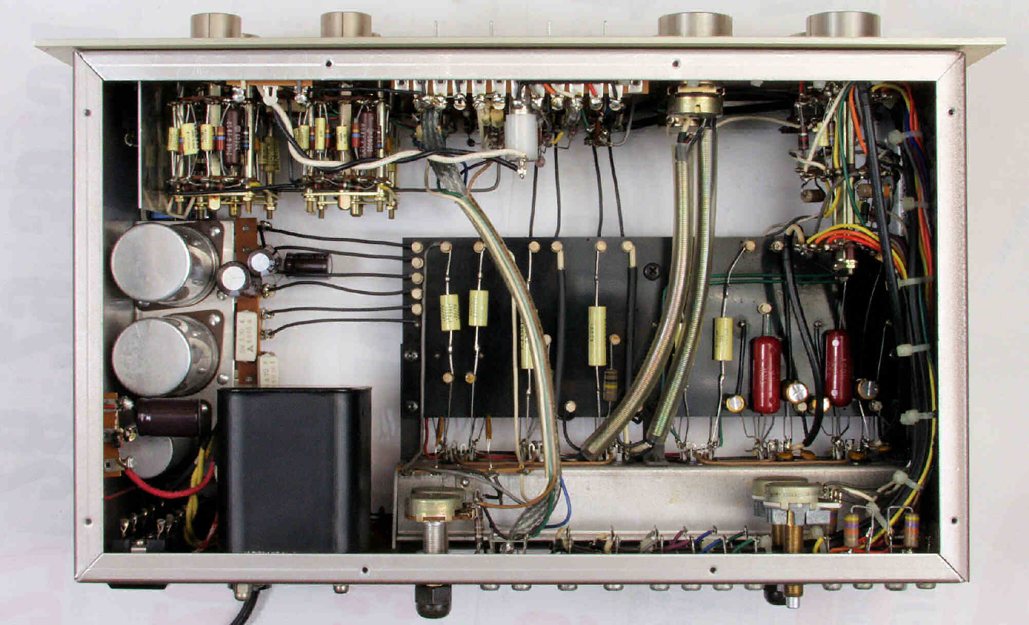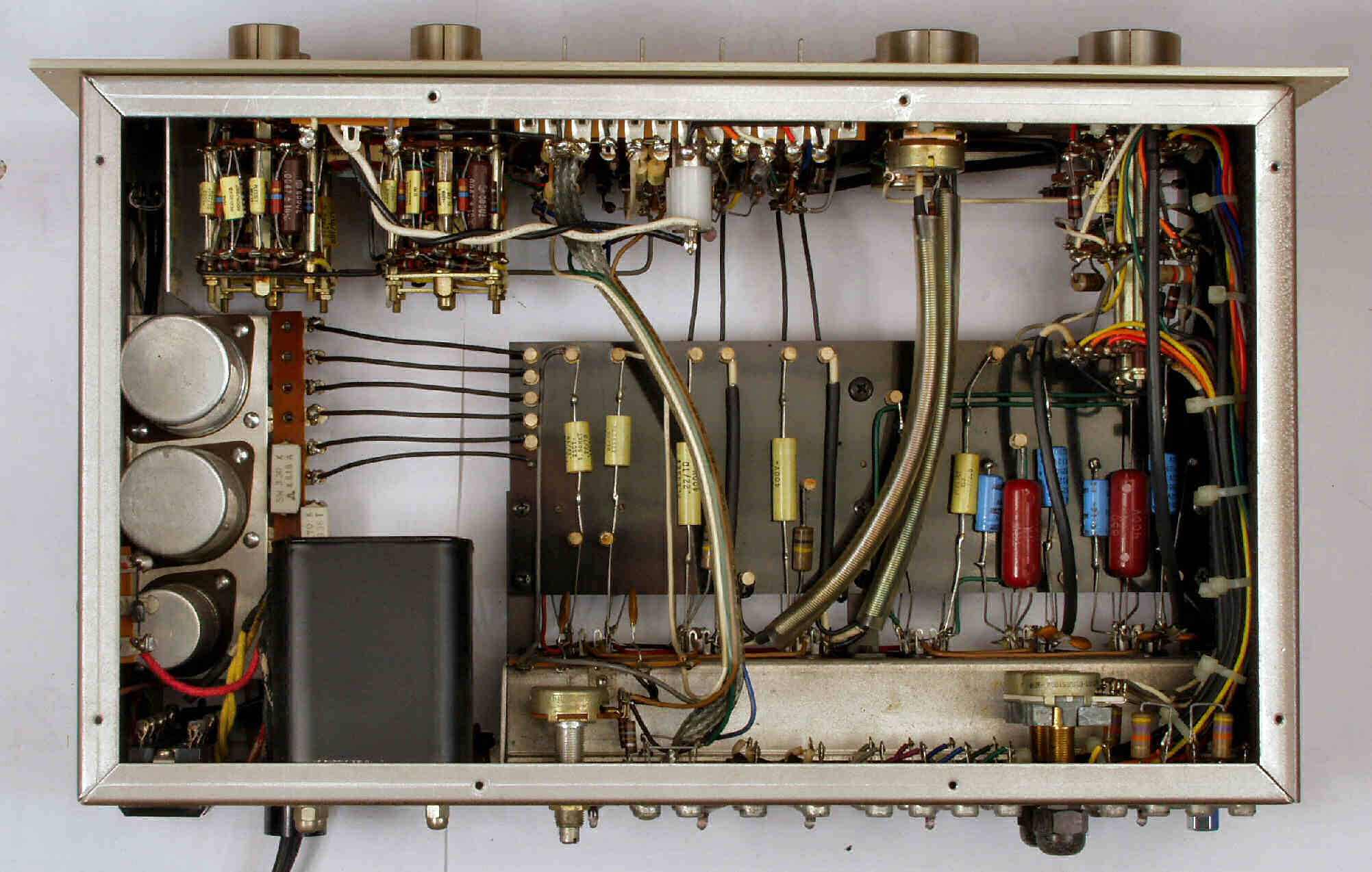 | A2. 点検中 上から見る、多くのフイルムコンデンサーが交換して有る | ||||||||||||||||||||||||||||
