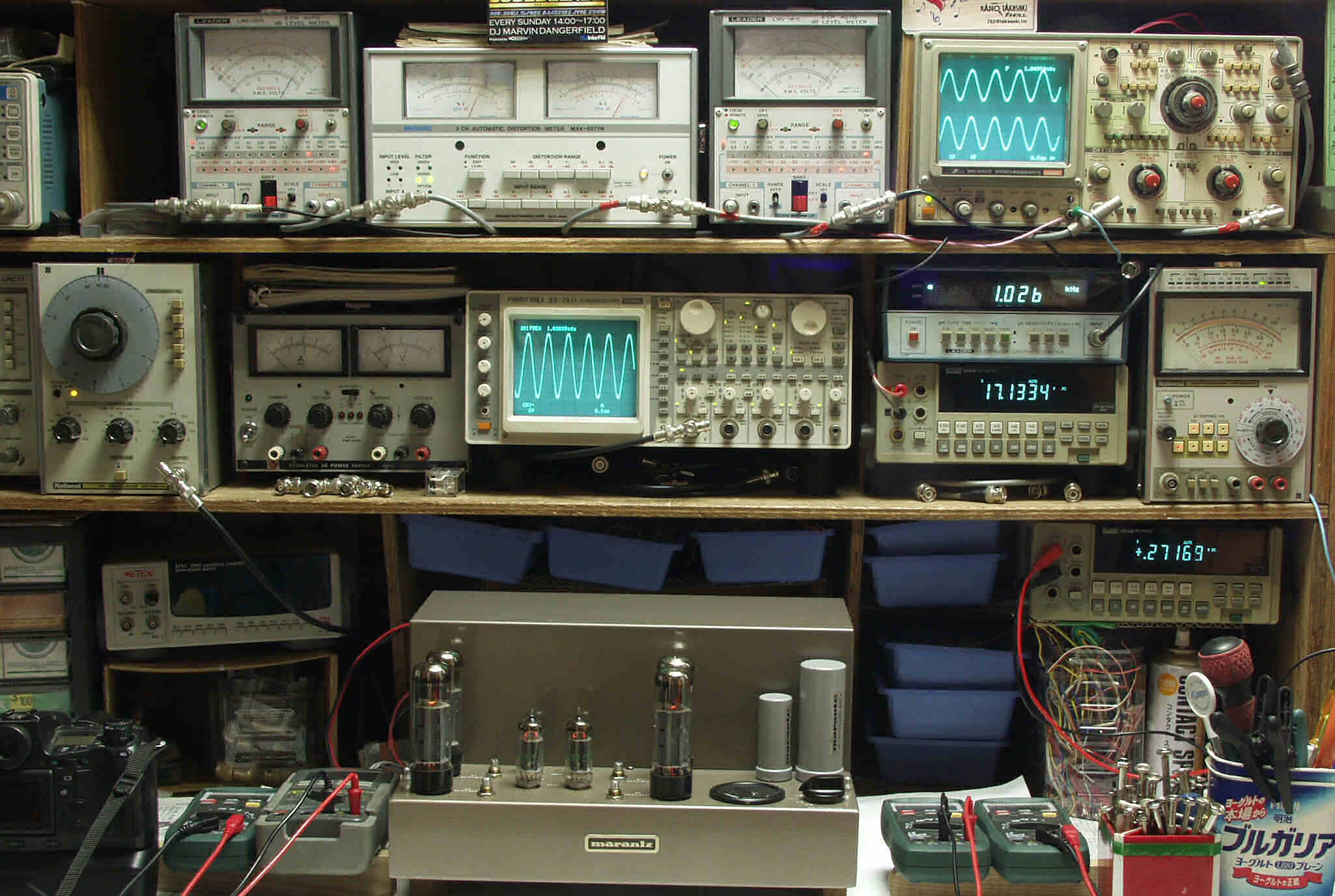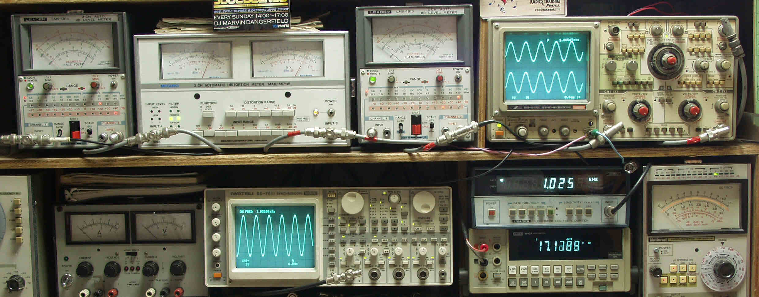 上中左歪み率計=SP出力の歪み率測定 左メ−タ−=L出力、右メ−タ−=R出力