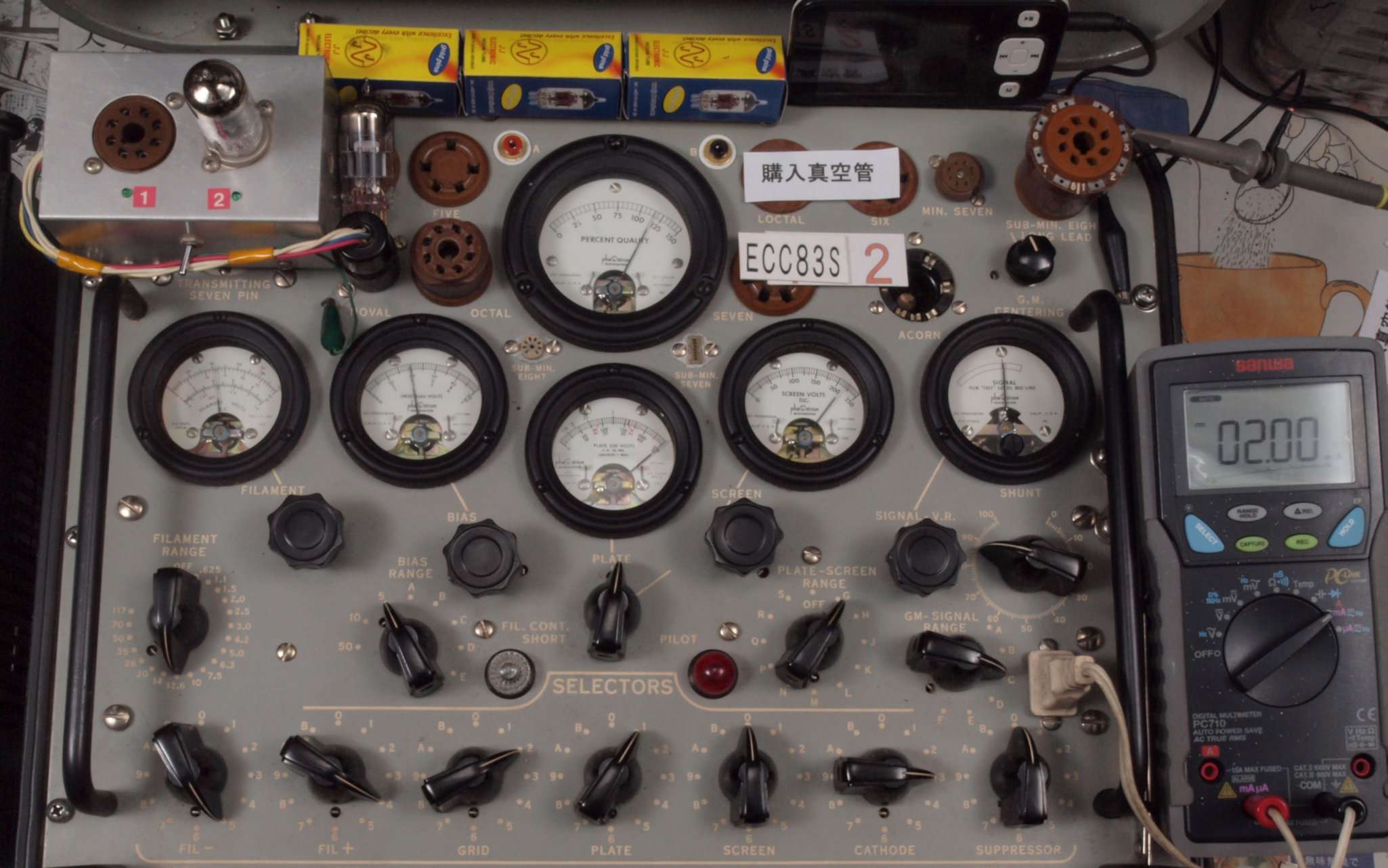 | V22. 購入2本目 ECC83S ユニット2。 Gm測定=2100μmho、IP=1.87mA。 | ||||||||||||||||||||||||||||||