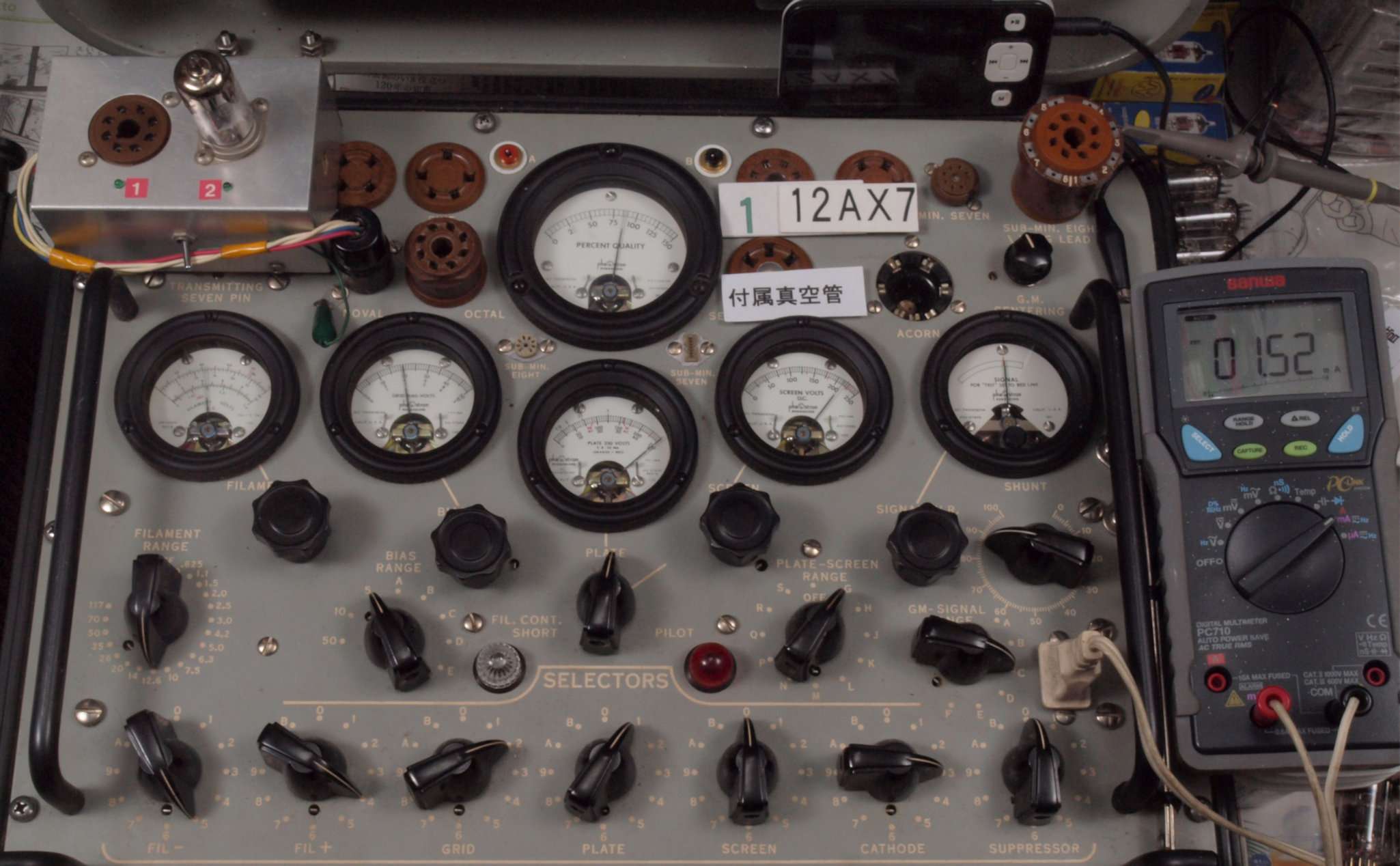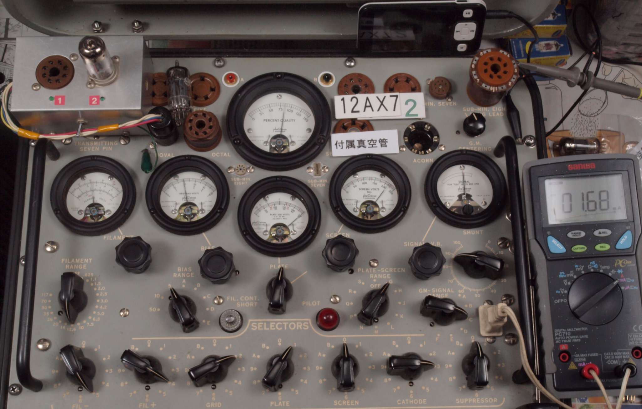 | U62. 付属6本目 12AX7 ユニット2。 Gm測定=1220μmho、IP=0.76mA。 | ||||||||||||||||||||||||||||||