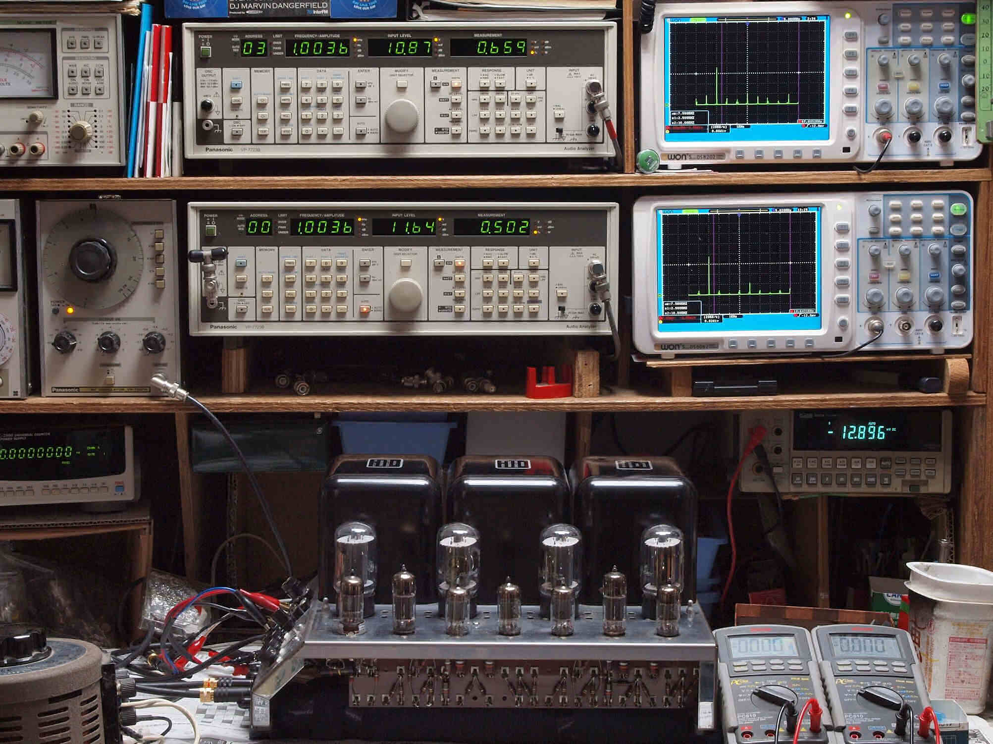 | V8. 購入真空管「7027」。 真空管ハンドブック(規格表)の、 相互コンダクタンス=6000μmho「Ep=250V、Esg=250V、Ip=72mA、Eg1=−14V」 1960/1962/1964/1966ナショナル真空管ハンドブック、1995オーディオ用真空管マニアル、60/62/69東芝電子管ハンドブック、1962日立電子管ハンドブック、1965/1971全日本真空管マニュアル、RC15/19/26/27/28/29/30 Receiving Tube Manual、1966実用真空管ハンドブック、1995世界の真空管カタログより。 |