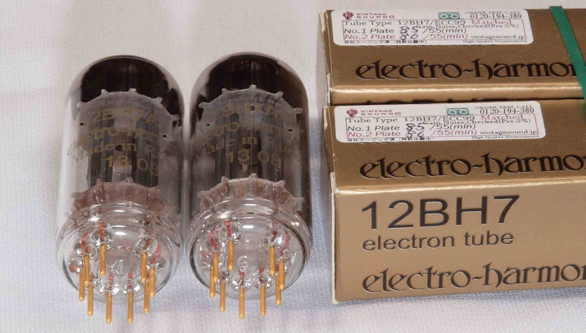 | 購入真空管、左から「12BH7」1本目、2本目。 | ||||||||||||||||||||||||
