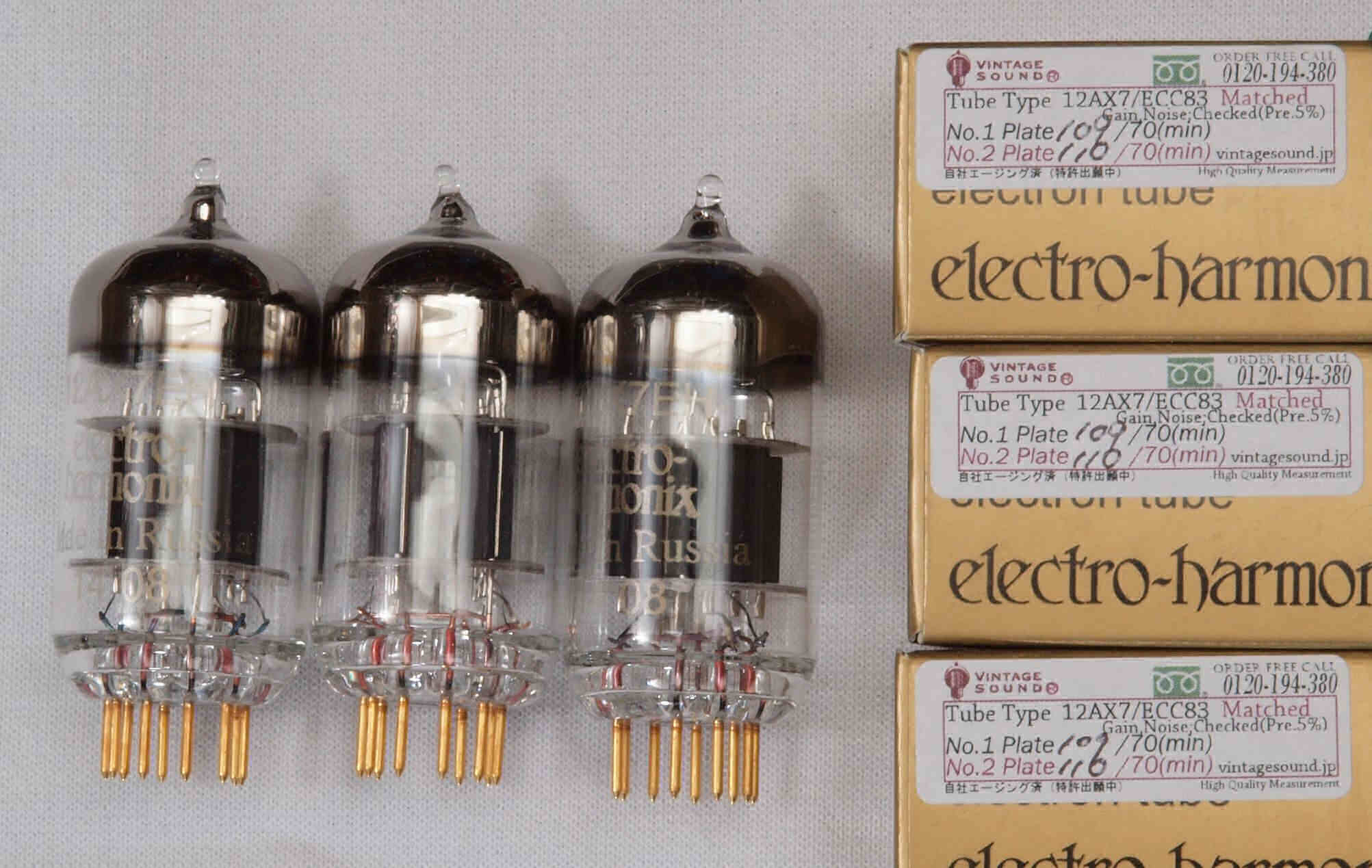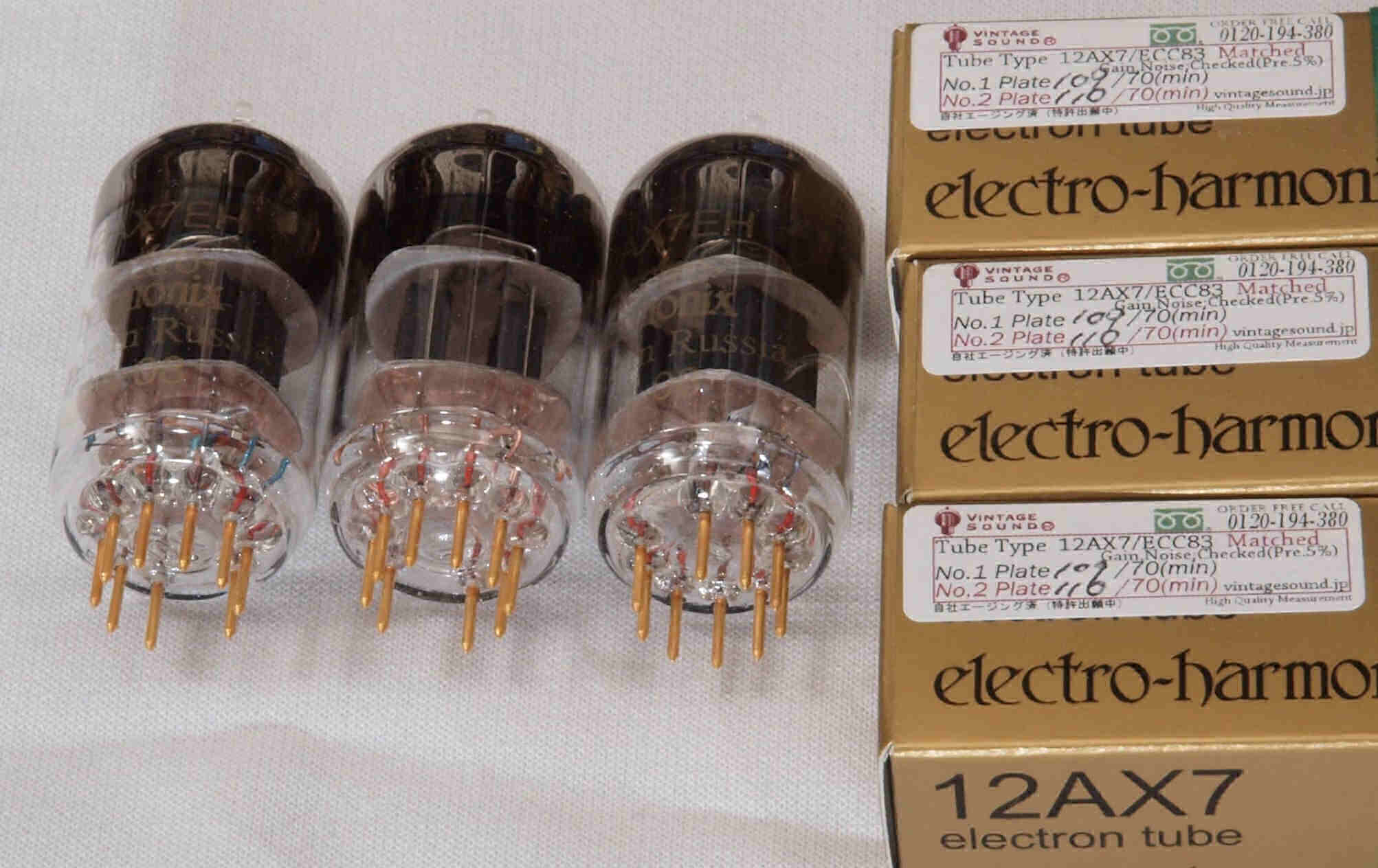 | 付属真空管「12AX7(ECC83)」。 左から1本目.2本目.3本目。 | ||||||||||||||||||||||||