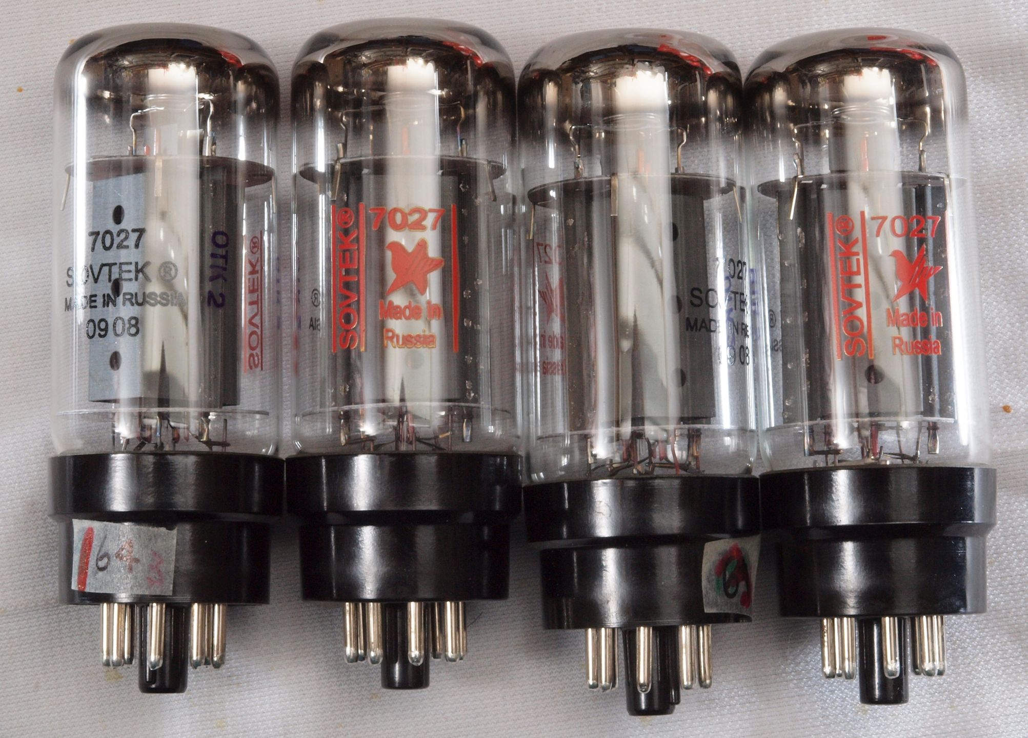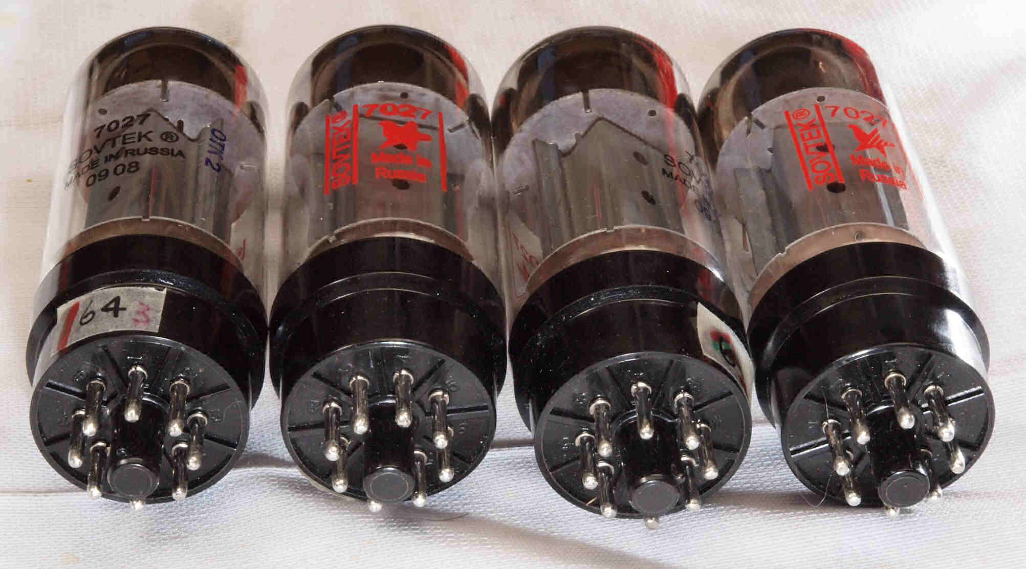 | 購入真空管「7027」。 左から1本目.2本目.3本目.4本目。 | ||||||||||||||||||||||||