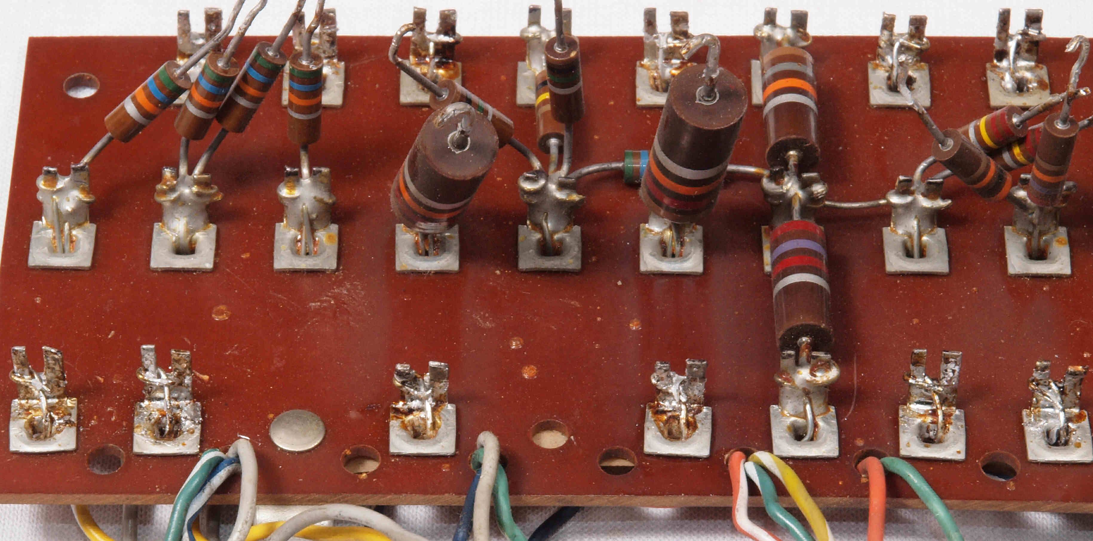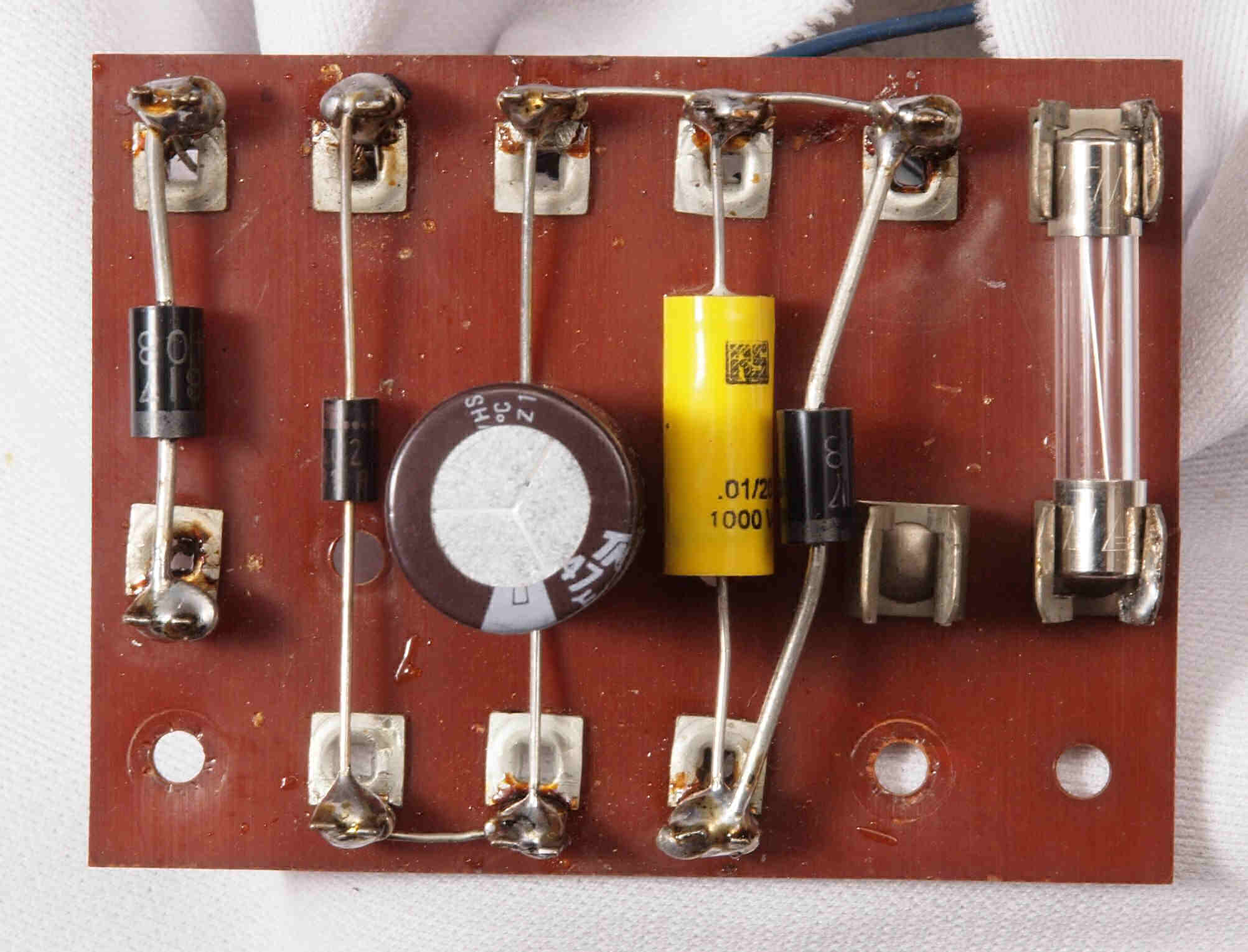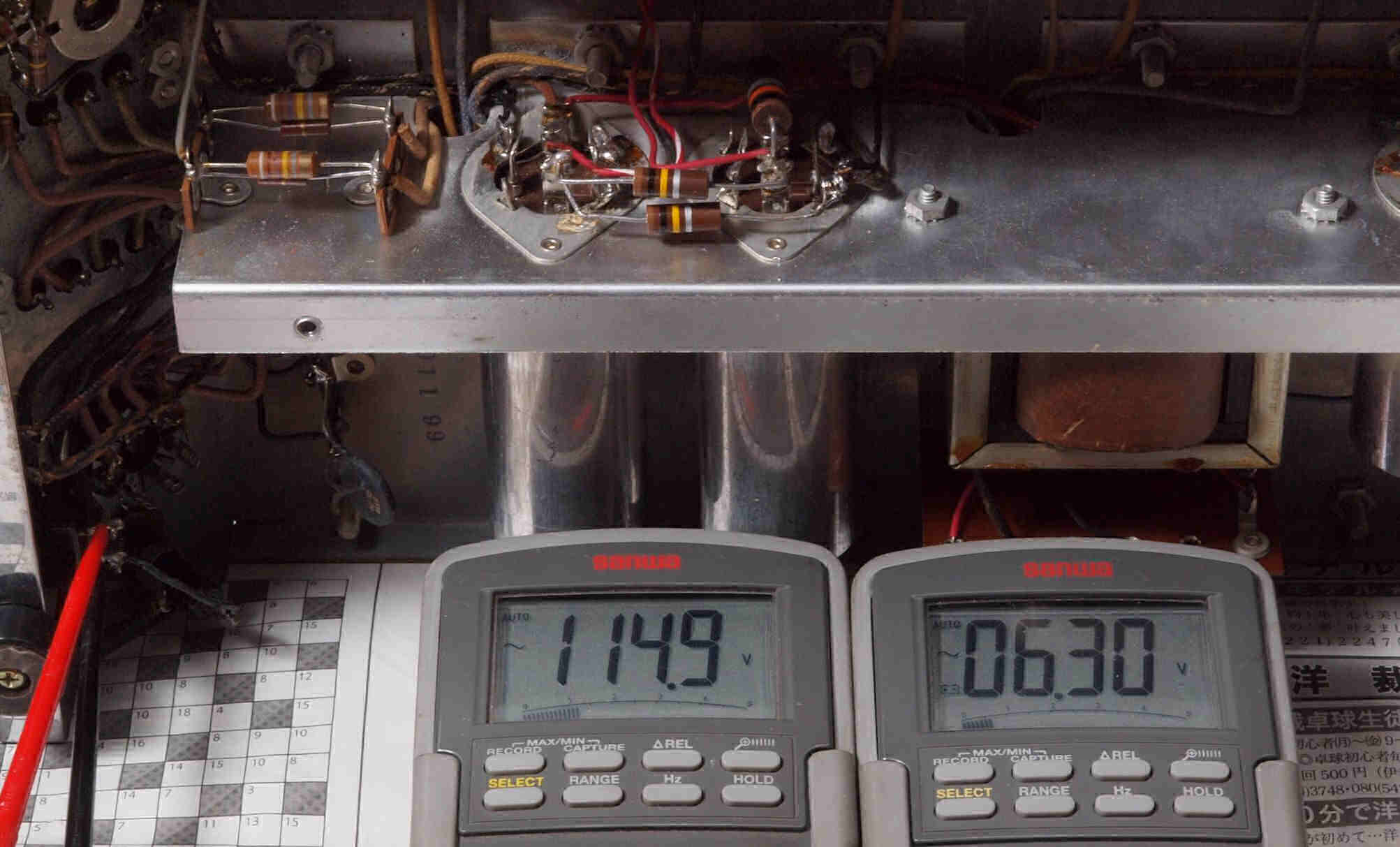 | A27. 点検中 整流基板、下から見る。整流ダイオード、バイアスセレンはダイオードに交換されている。 | ||||||||||||||||||||||||