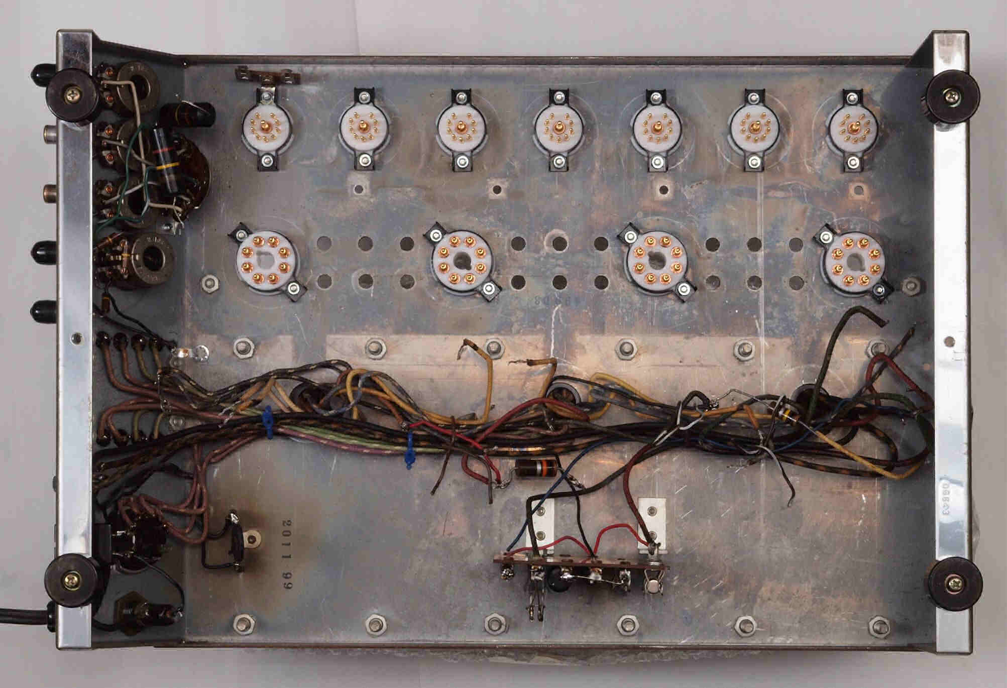 | C84. 修理(交換)後 真空管ソケット交換、 シャシ裏から見る。 トランス配線は綺麗。 | ||||||||||||||||||||||||