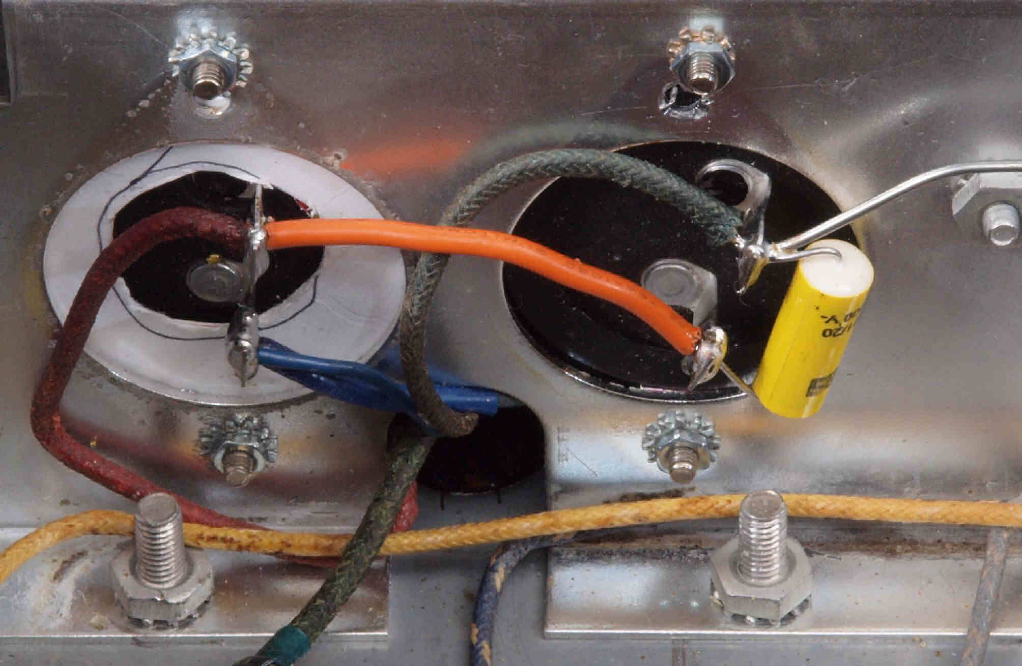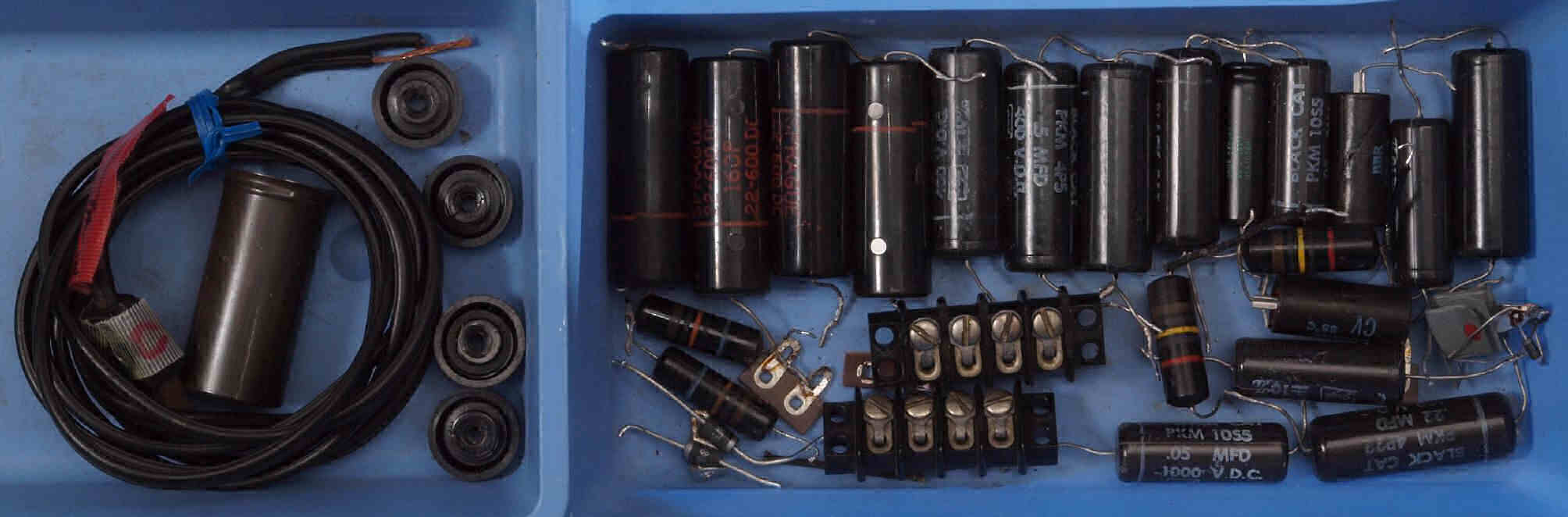 | C94. 交換部品、 左=80μ+40μ+30μ+20μ/525WV、右=新しい物100μ×2/500WV。 | ||||||||||||||||||||||||