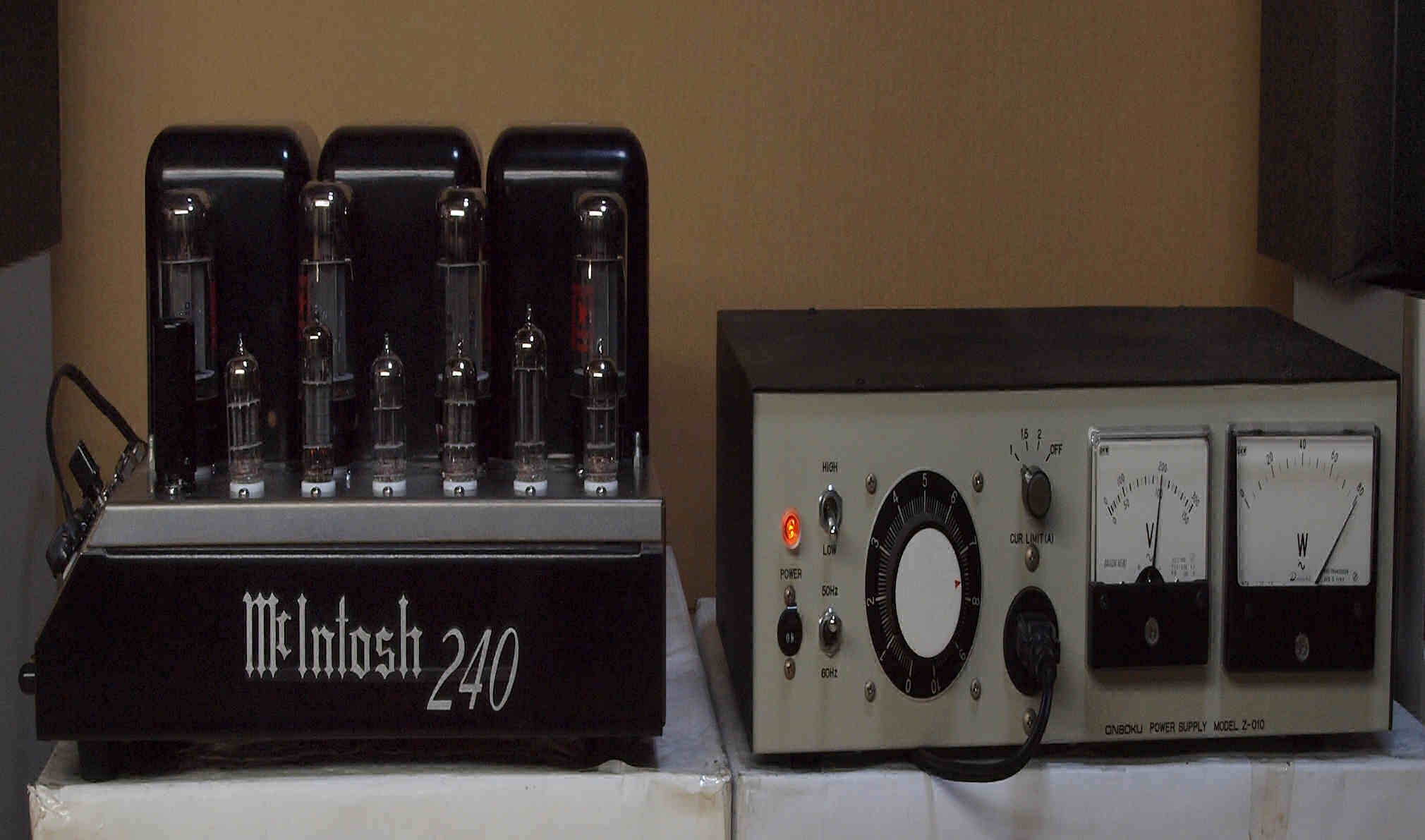 E. 調整・測定 F. 修理費 160,000円 オーバーホール修理。 但し、終段真空管7027 4本以外は別途。 Y. ユーザー宅の設置状況 S. Mcintosh MC240 の仕様(マニアル・カタログより) このクラスの6L6GCは良質な物を選択すること。 又、前段の12AX7/12BH7と直結なので、此方も同様の配慮が必要。 |