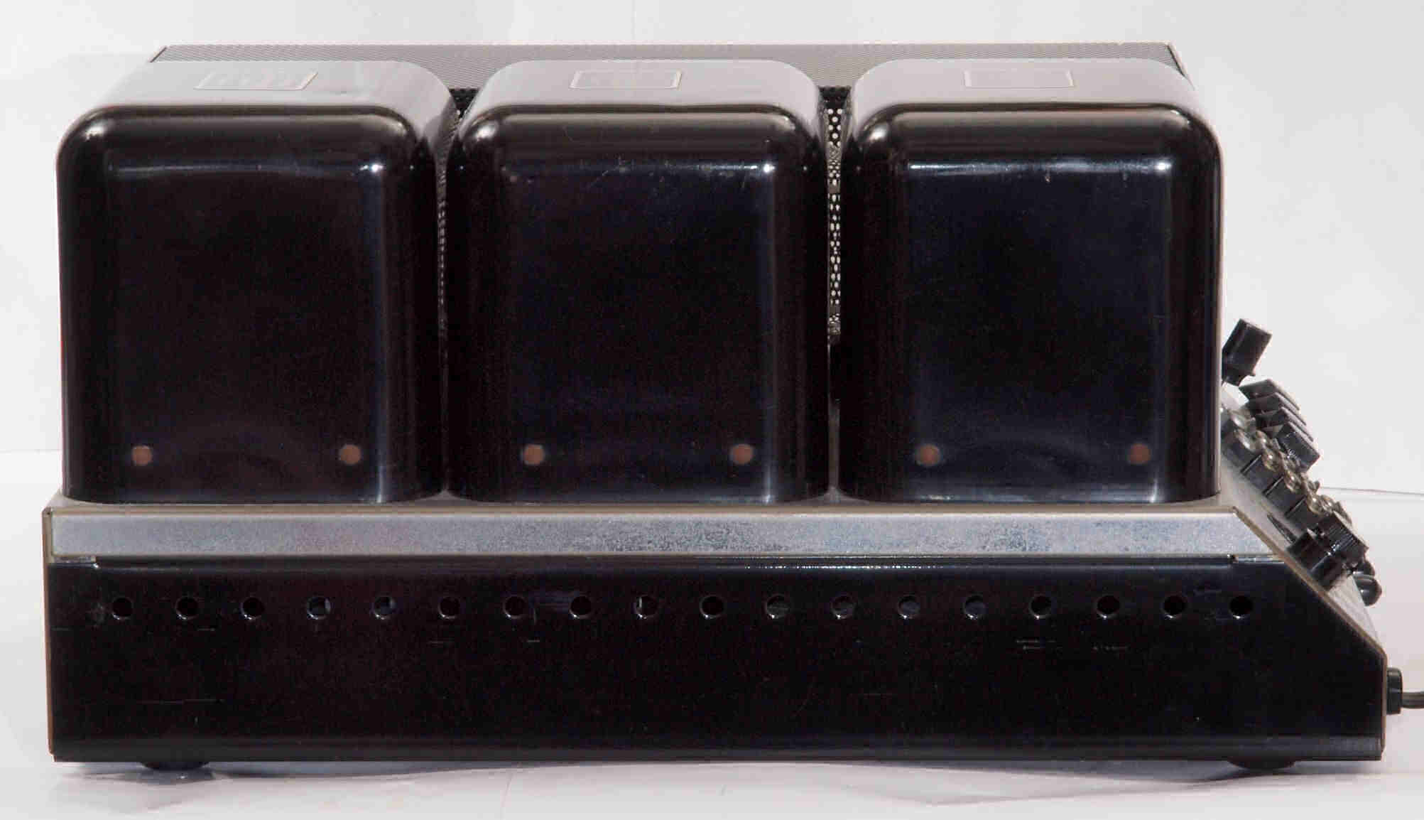 | U8. 付属真空管「6L6GC」。 左から1本目.2本目.3本目.4本目。 真空管ハンドブック(規格表)の、 相互コンダクタンス=6000μmho「Ep=250V、Esg=250V、Eg1=−14V、Ip=72mA」 1960/1962/1964/1966ナショナル真空管ハンドブック、1995オーディオ用真空管マニアル、60/62/69東芝電子管ハンドブック、1962日立電子管ハンドブック、1965/1971全日本真空管マニュアル、RC15/19/26/27/28/29/30 Receiving Tube Manual、1966実用真空管ハンドブック、1995世界の真空管カタログより。 |