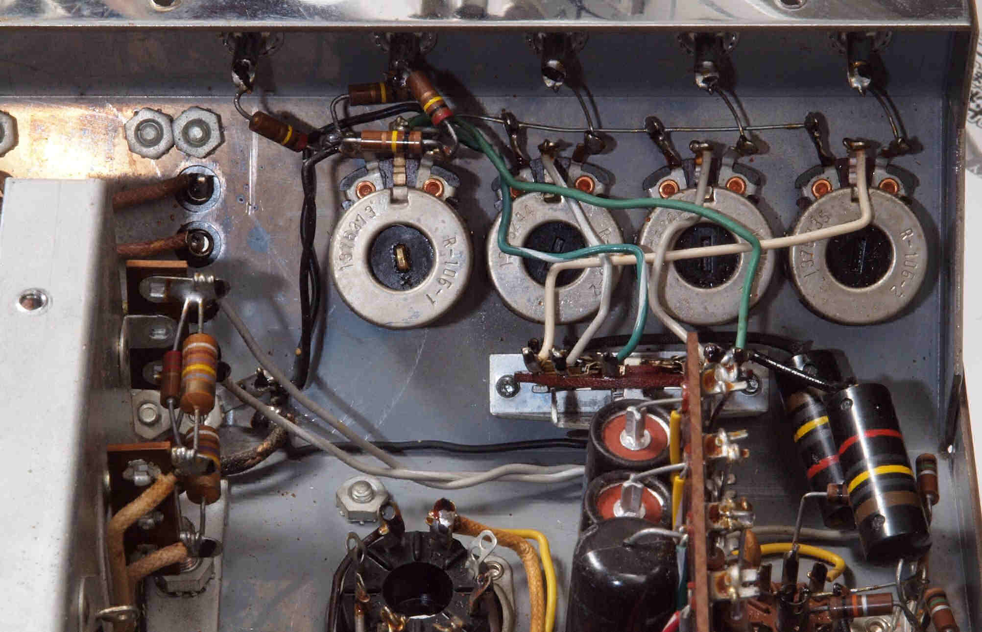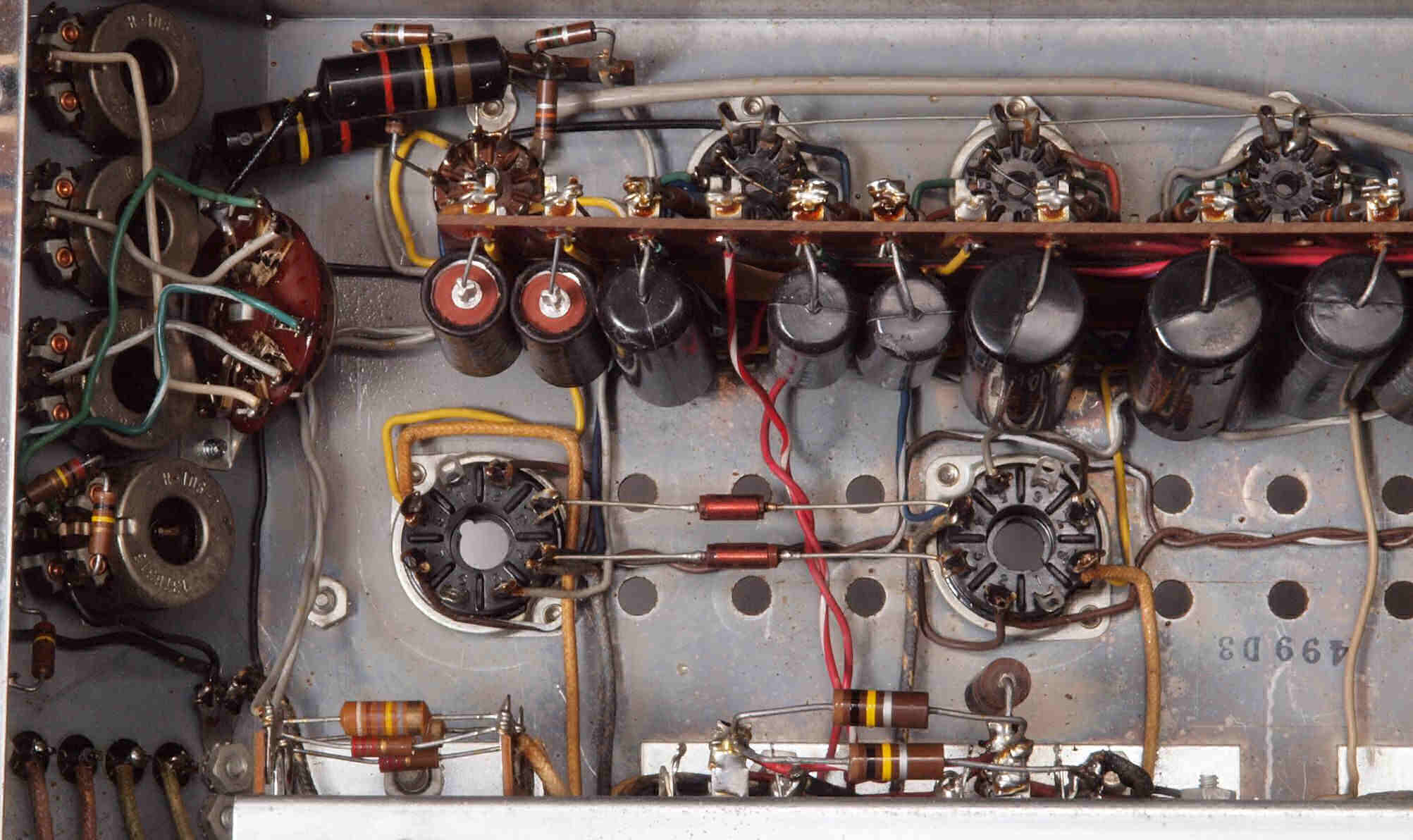 | C51. 修理前 ブロック電解コンデンサーとチョークトランスのシャーシ。 | ||||||||||||||||||||||||