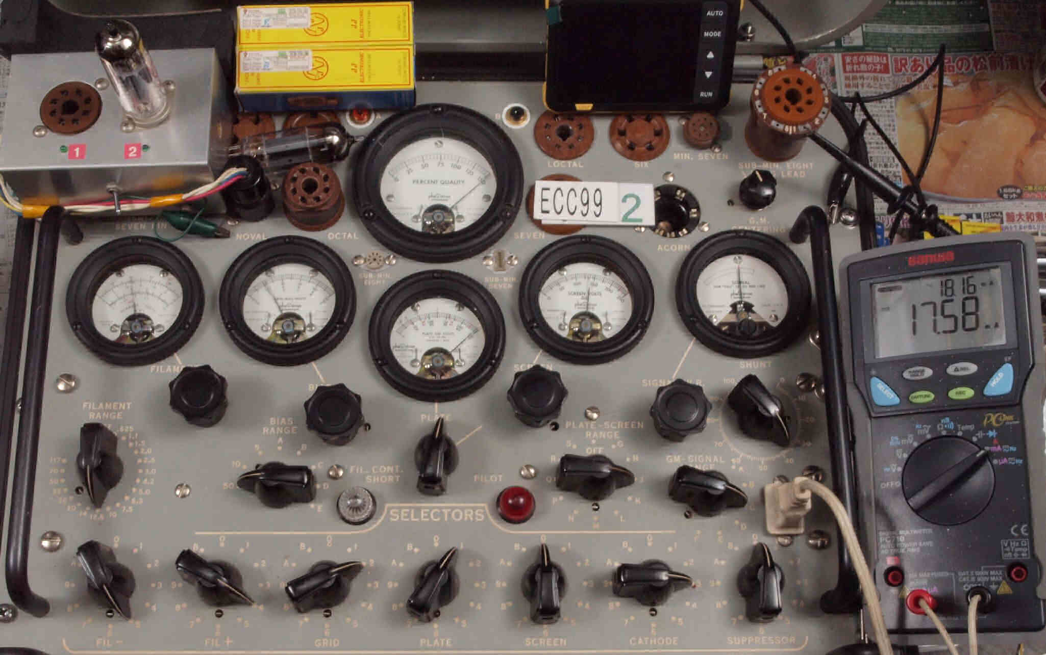 | V22. 提供真空管「ECC99」2本目ユニット2測定。 Gm=7500μmho、Ip=17.58mA。 | ||||||||||||||||||||||||