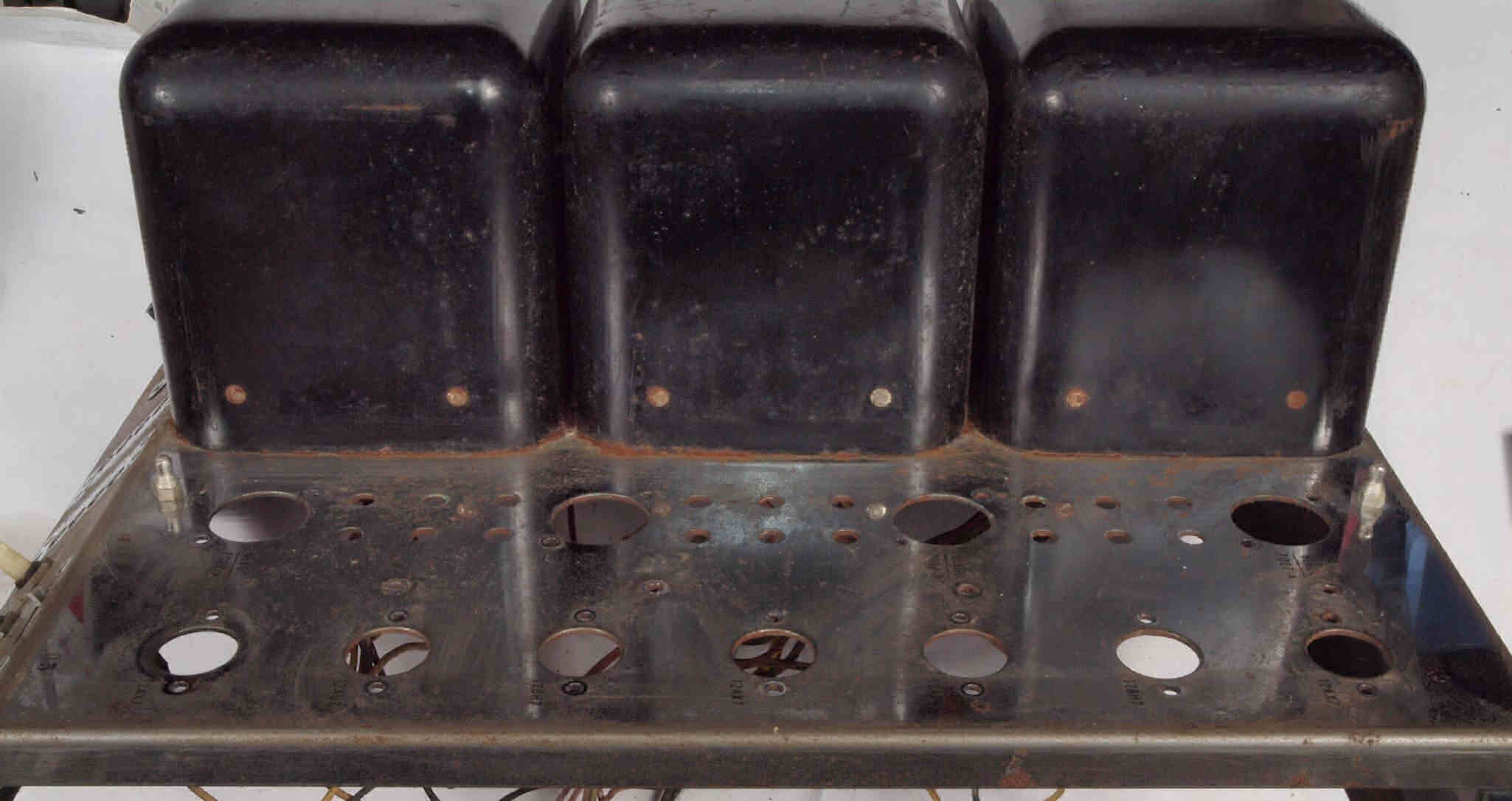 | C61. 修理中 ブロック電解コンデンサーとチョークトランスのシャーシ。 | ||||||||||||||||||||||||
