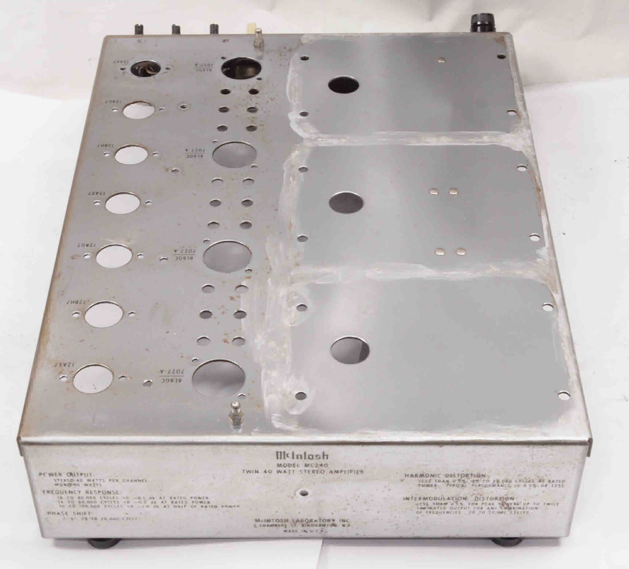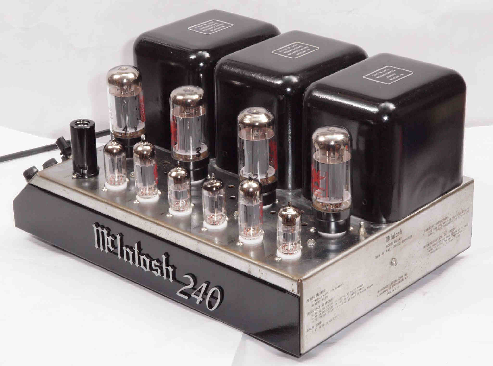 E. 調整・測定 F. 修理費 231,000円 オーバーホール修理。 真空管一式含む。 Y. ユーザー宅の設置状況 S. Mcintosh MC240 の仕様(マニアル・カタログより) このクラスの6L6GCは良質な物を選択すること。 又、前段の12AX7/12BH7と直結なので、此方も同様の配慮が必要。 |