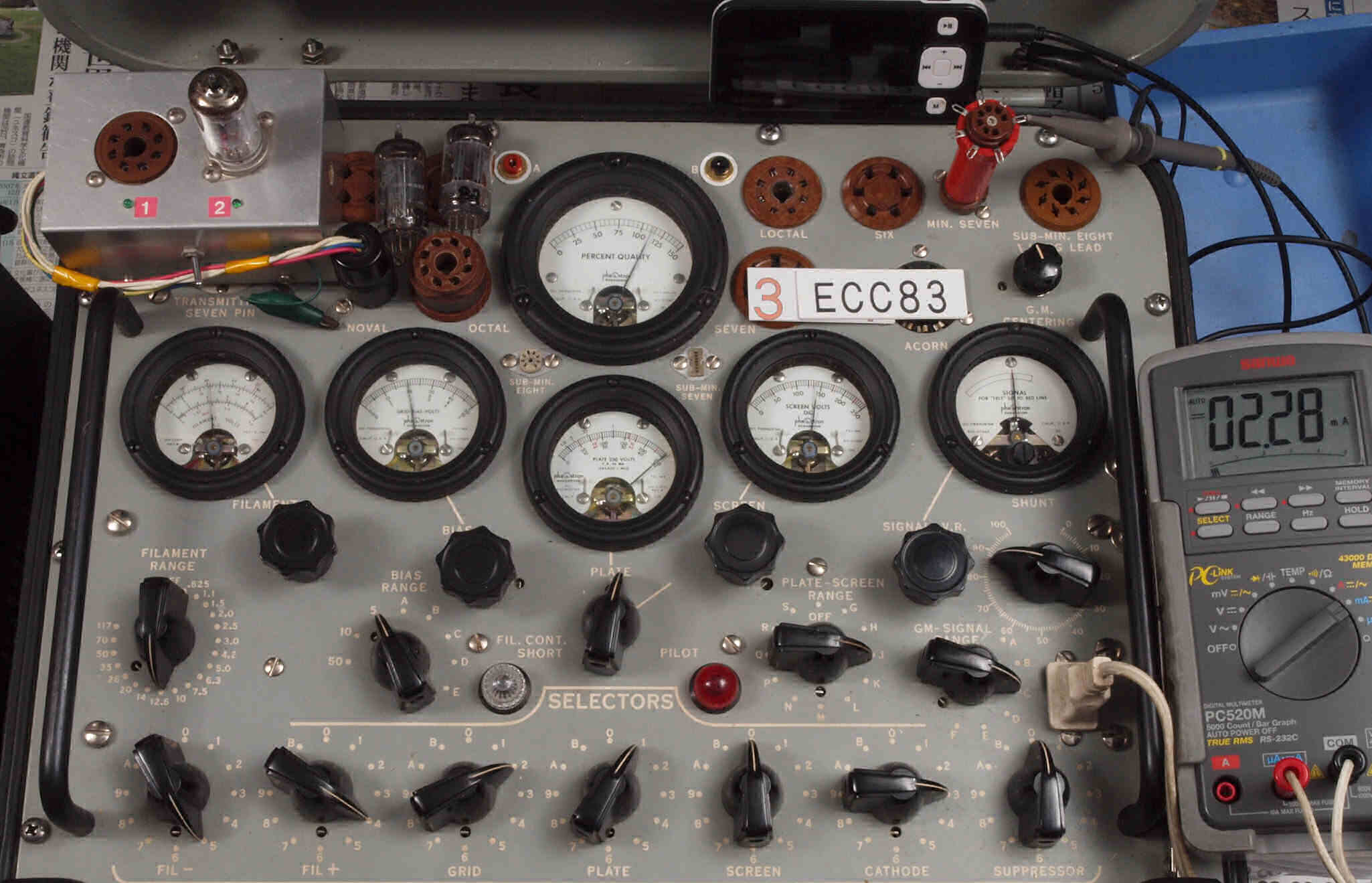 | U22. 付属R側「12AU7」ユニット2。 Gm測定=2800μmho、IP=13.52mA。 | ||||||||||||||||||||||||||||||