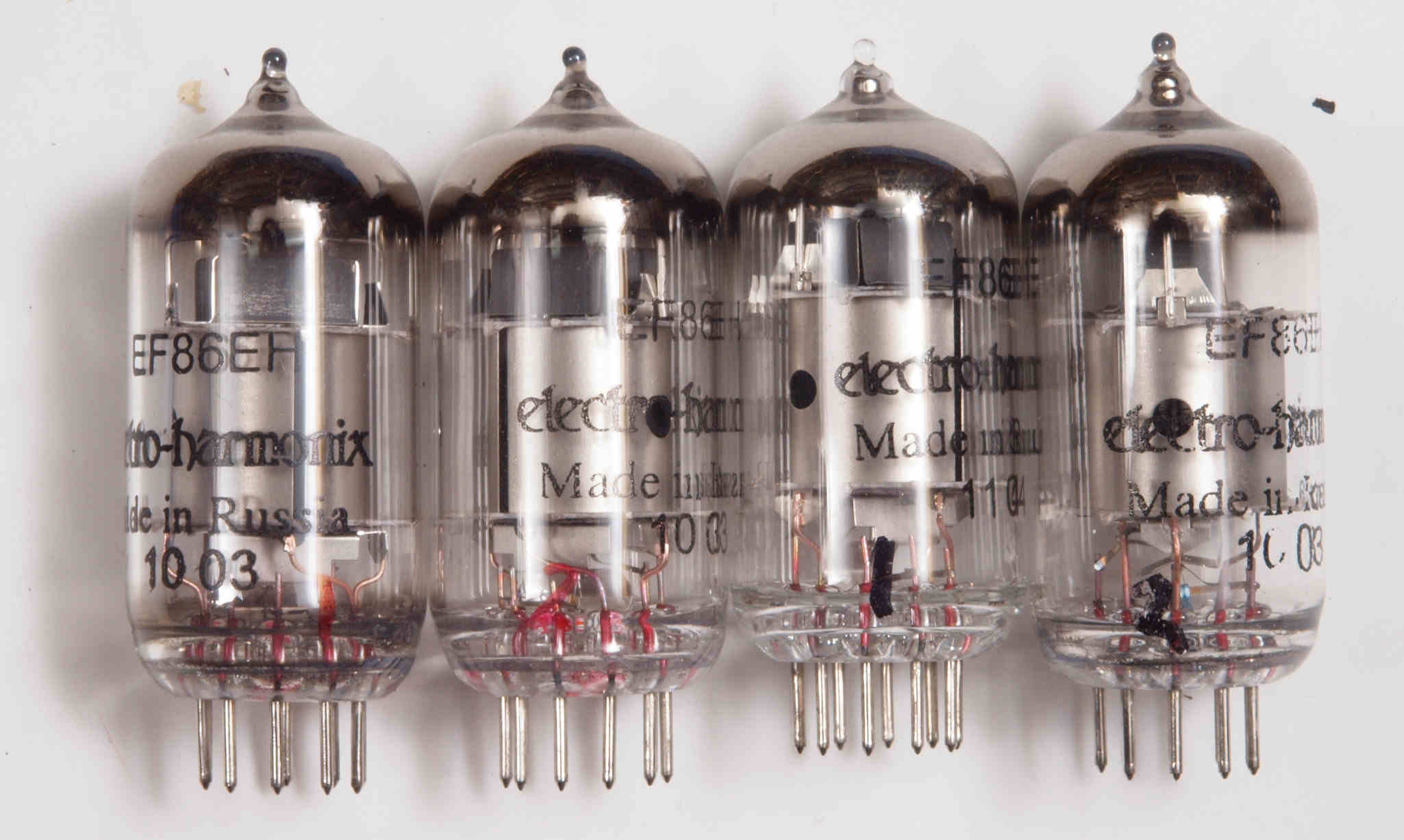 A21. 付属真空管。 左から 9台目EF86、2本目EF86、10台目EF86、2本目EF86。
