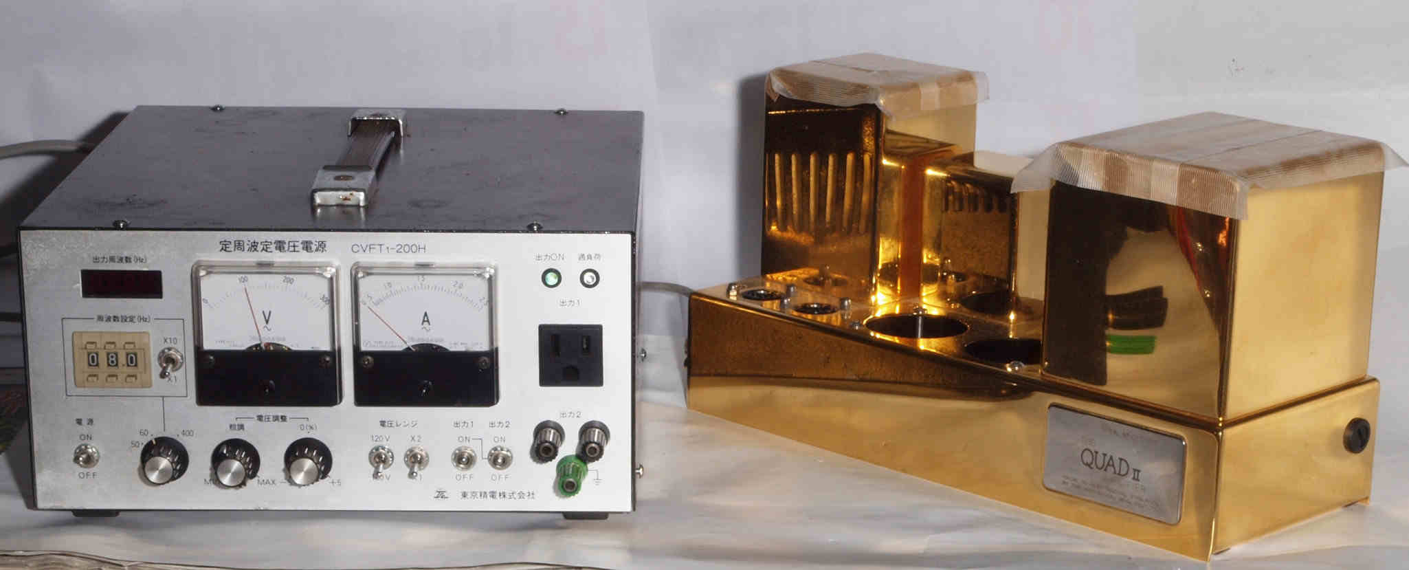 • 左の電源装置で電圧、電流で測定する。 入力AC100V、1.35A、消費電力=135W。