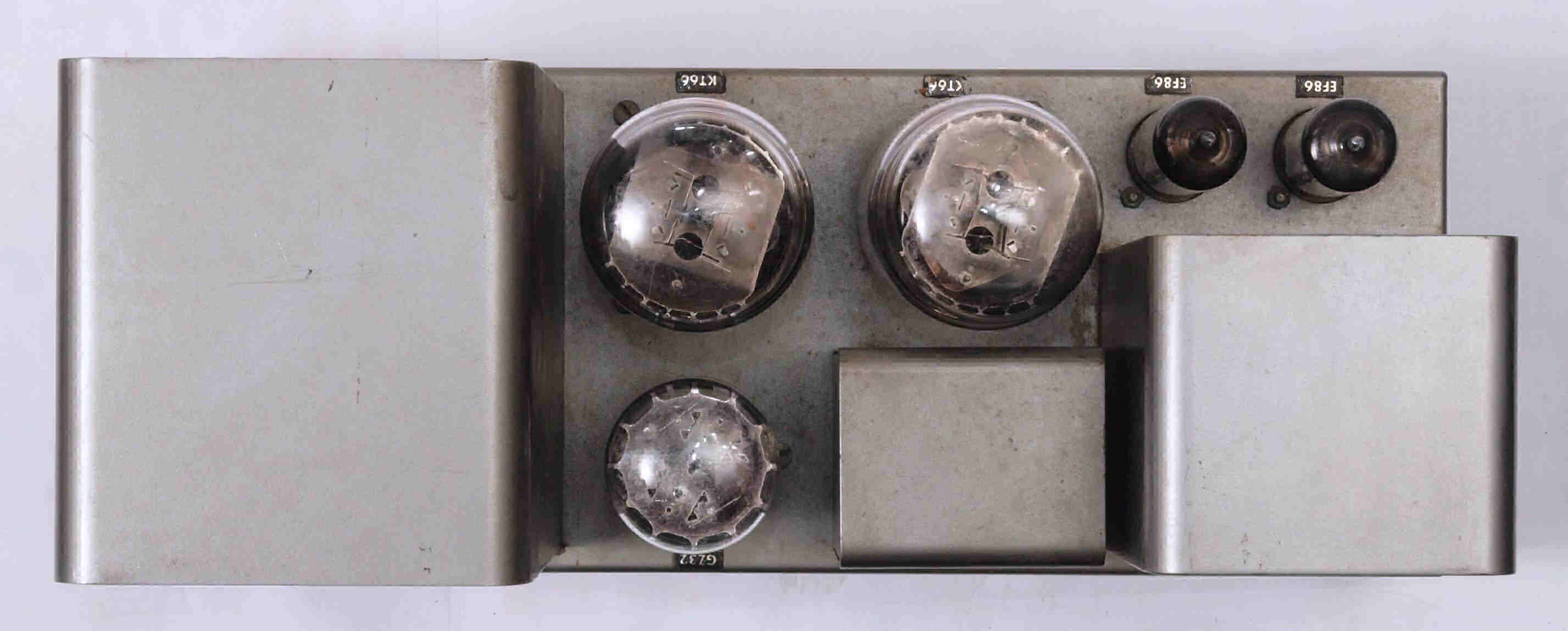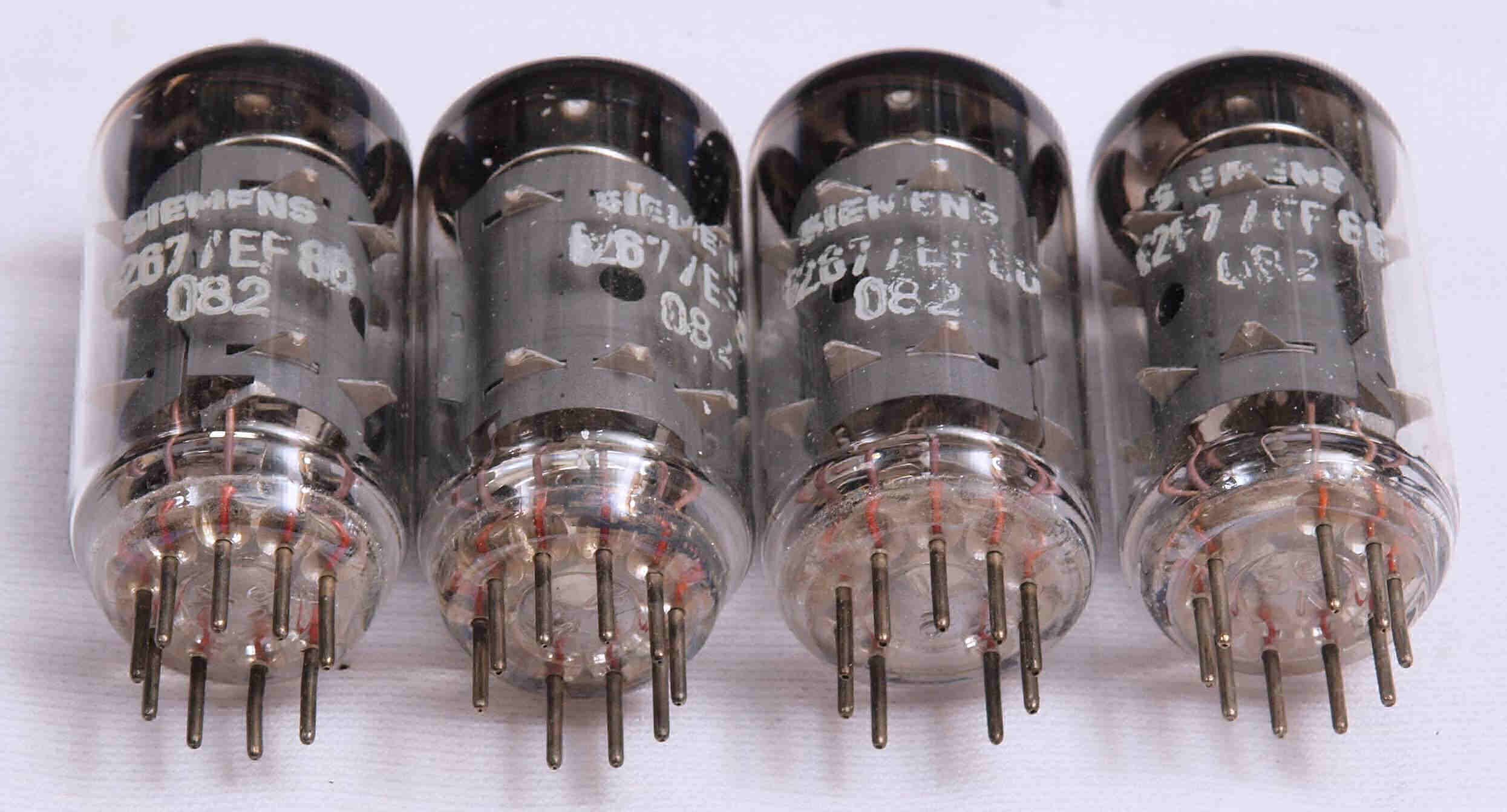| U1. 付属真空管 「6267(EF86)」、左から1、2本目=QUADU A用。3、4本目=QUADU B用。 | ||||||||||||||||||||||