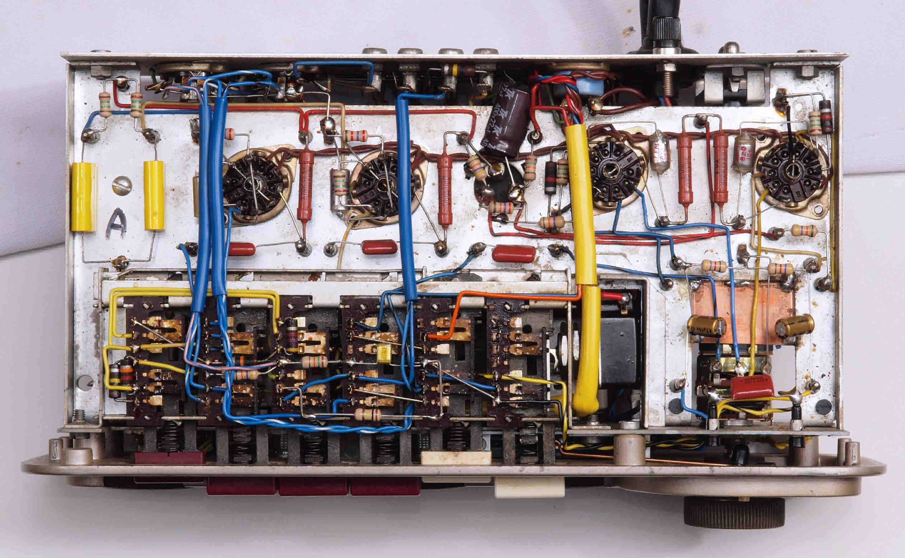 C13. 修理前 ケースから出し、真空管を外し、上から見る。
