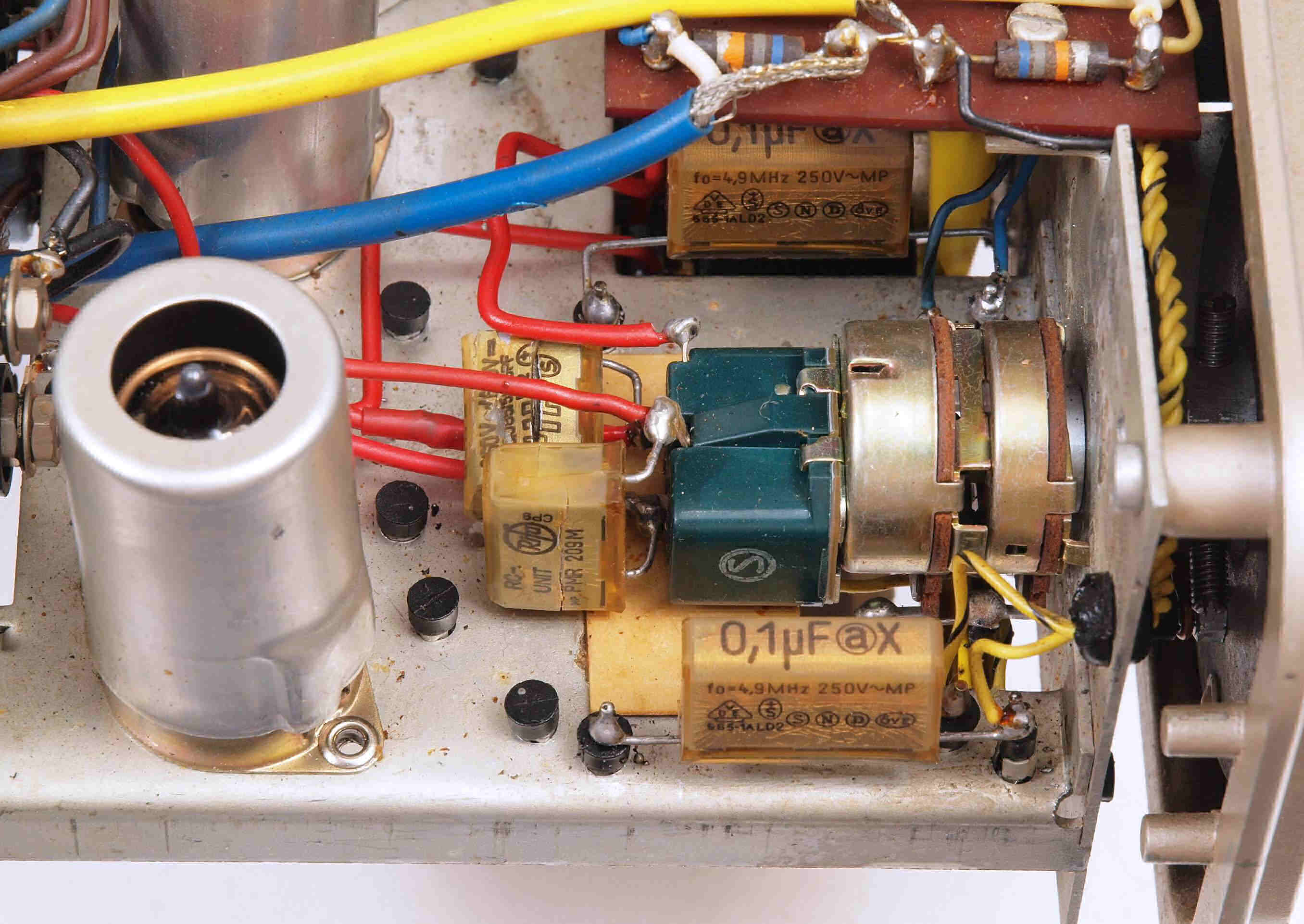 C132. 修理中 真空管ソケットに接点復活材が付着している。