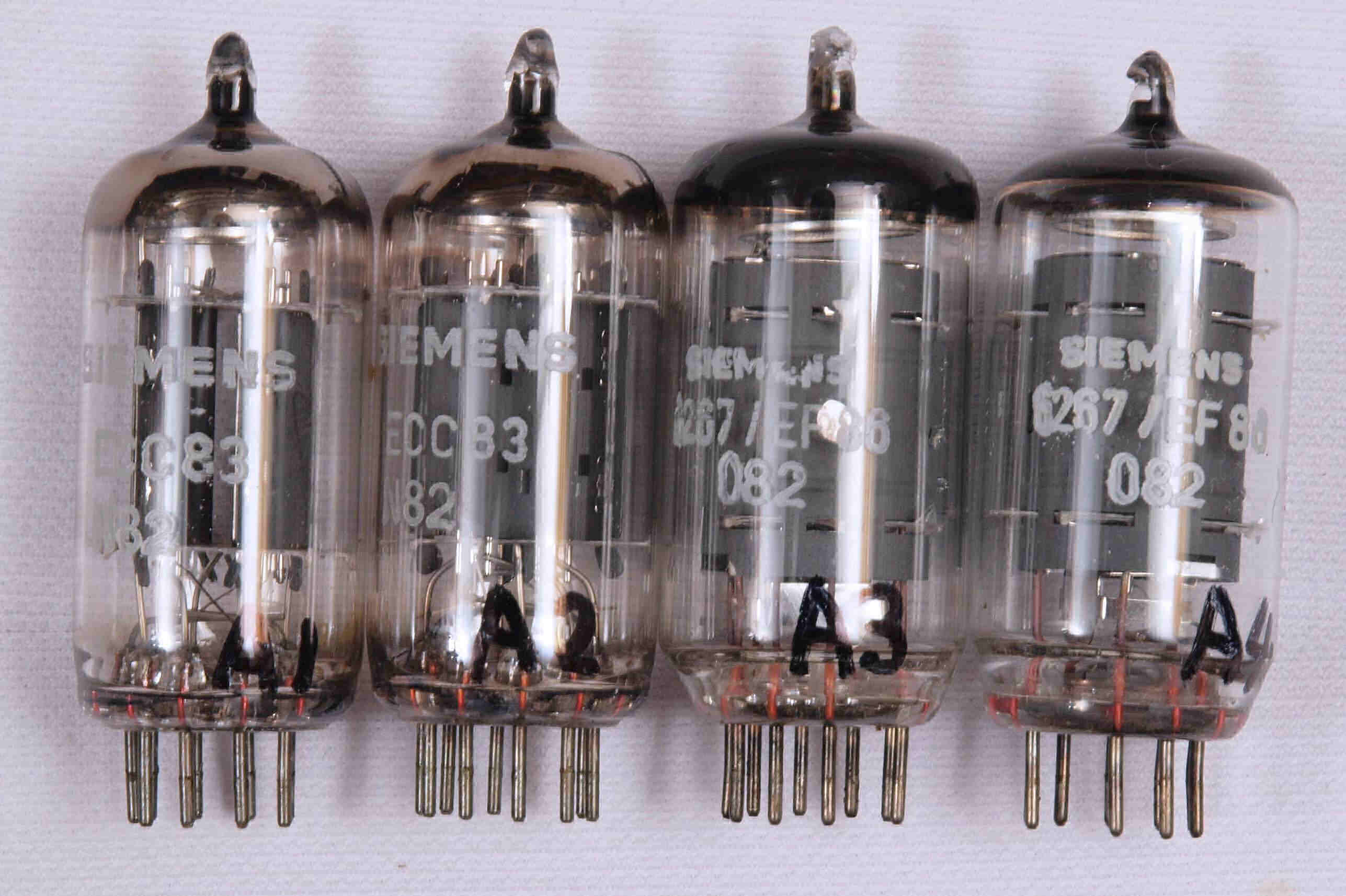 付属真空管 「12AX7(ECC83)」、左から1、2本目。 「6267(EF86)」、左から3、4本目。