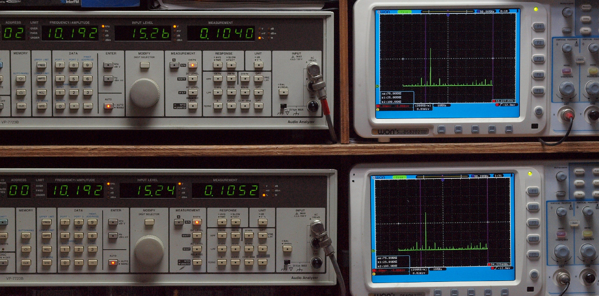 よって、ダイアル設定出力レベルより低くなります。測定機器の仕様や整備の様子はこちら、「VP−7723B」「VP−7201A」。 FFT画面の見方はこちら。