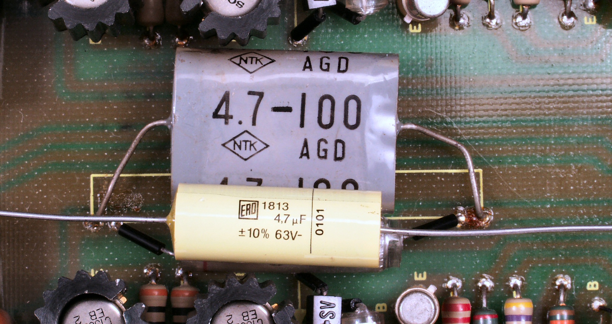 | A7. 点検中 R側・L側−AMP基板の高価な貫通電解コンデンサー | ||||||||||||||||||||||||||||||||||||||
