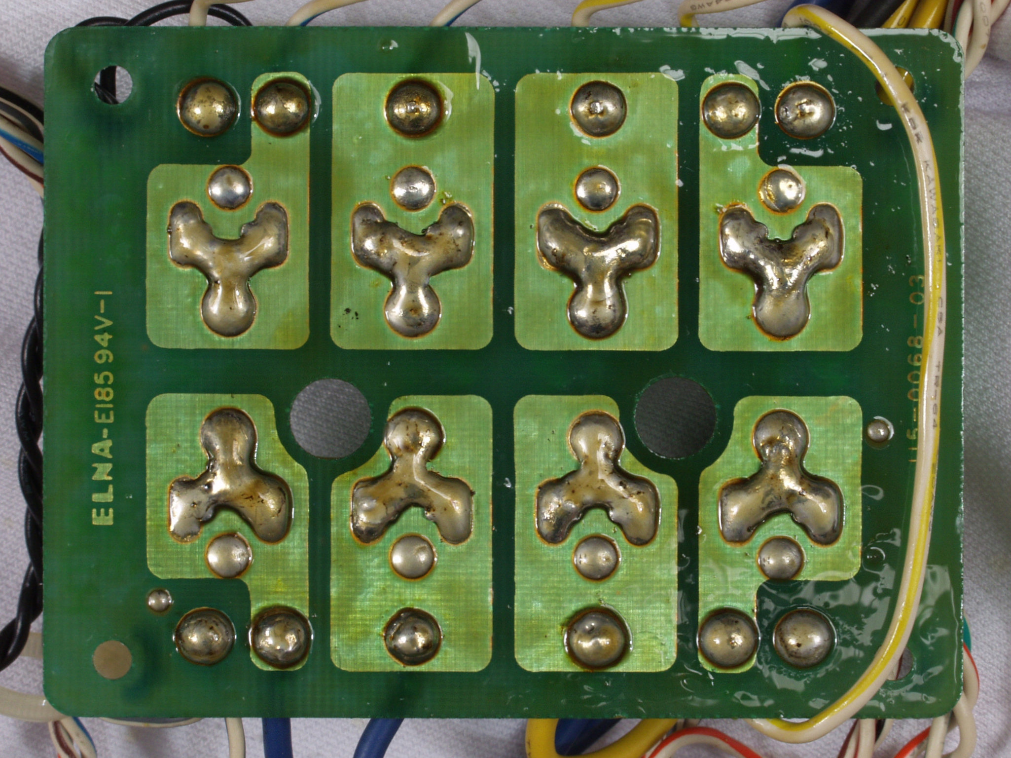 | C531. 修理中 出力切り替え基板裏 製作時の半田が、全く銅箔に付着していない! | ||||||||||||||||||||||||||||||||||||||