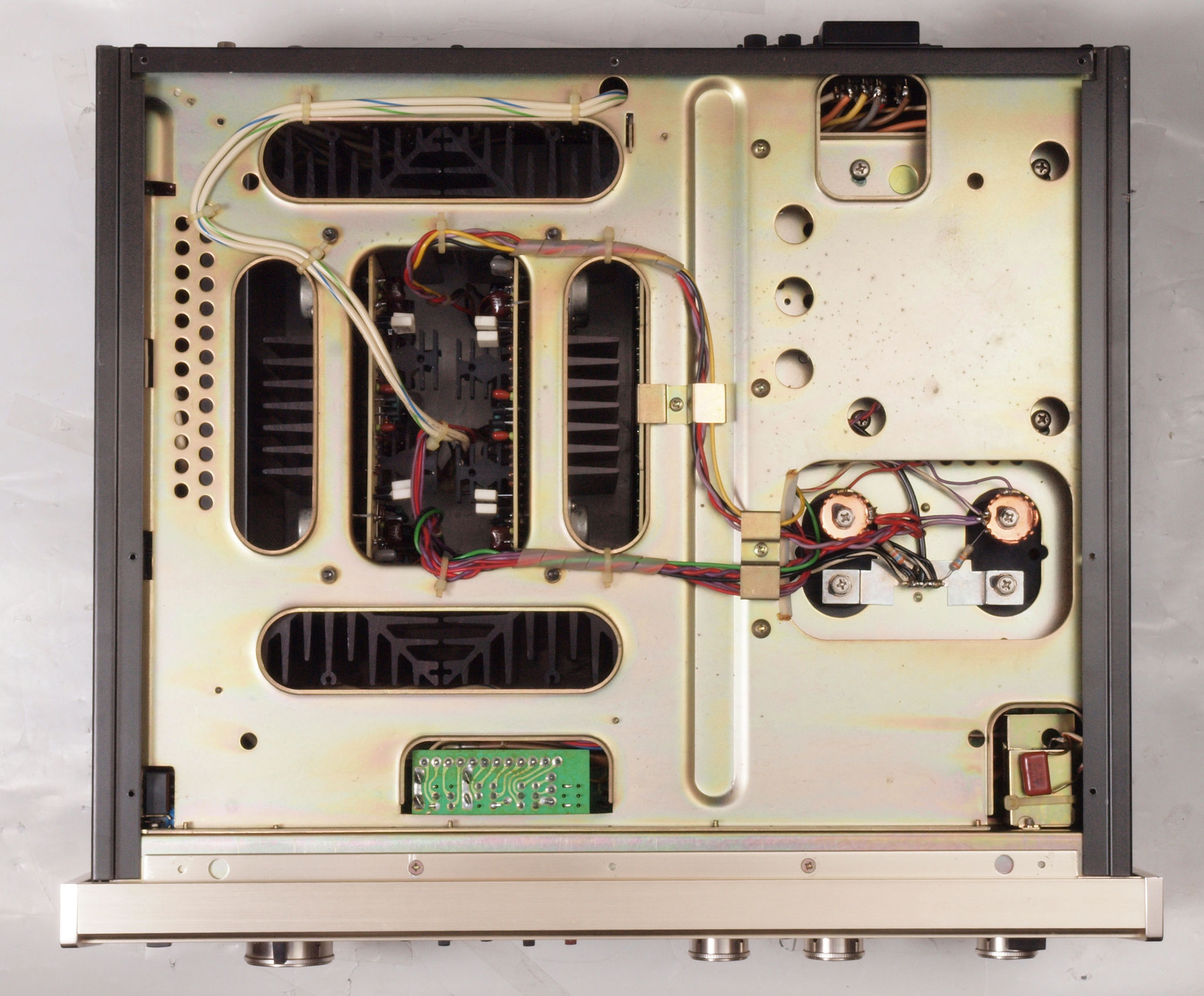 初段複合FET(電解効果トランジスター)1個、半固定VR2個交換。電解コンデンサ−9個交換。