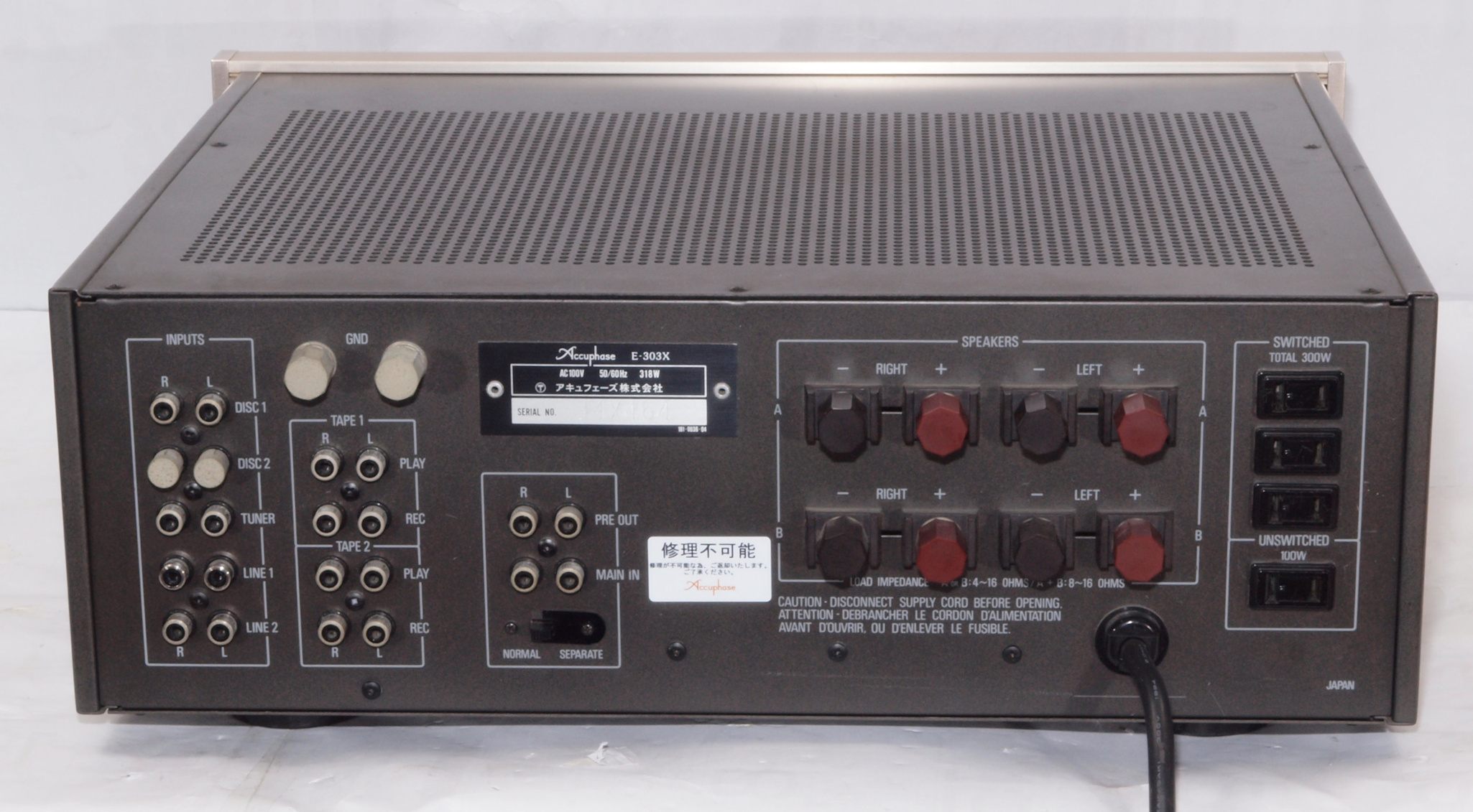 E. 調整・測定 F. 修理費 131,000円 オーバーホール修理。 Y. ユーザー宅の設置状況。 S. Accuphase E−303x の仕様(マニアル・カタログより) |